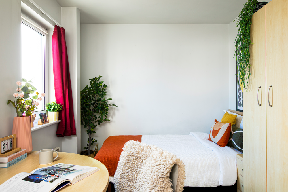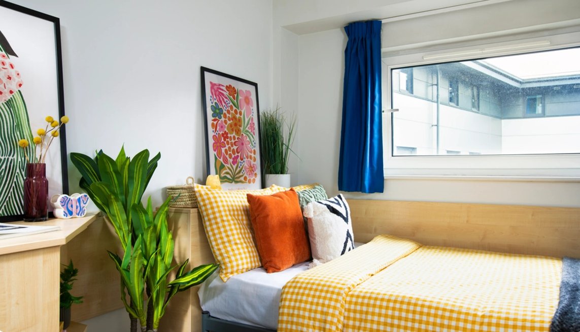 生活必备设施:可容纳690名学生的大型学生社区,提供En-suite和Studio房型,2-6人间,配备私人独立卫浴,平衡 “轻社交” 与个人隐私,居住舒适度更高。房租已包含暖气、水费、电费,无需额外分摊;公寓内(含房间及公共区域)全覆盖 Wi-Fi,且提供超高速宽带,满足线上学习、娱乐需求。提供自行车存放处、自助洗衣房及垃圾分类回收点,解决日常居住基础需求。配备 24 小时监控(CCTV)、24 小时协助服务及驻场服务团队;采用门禁安全准入系统与消防系统,同时为住户提供财物保险,居住安全性十足。