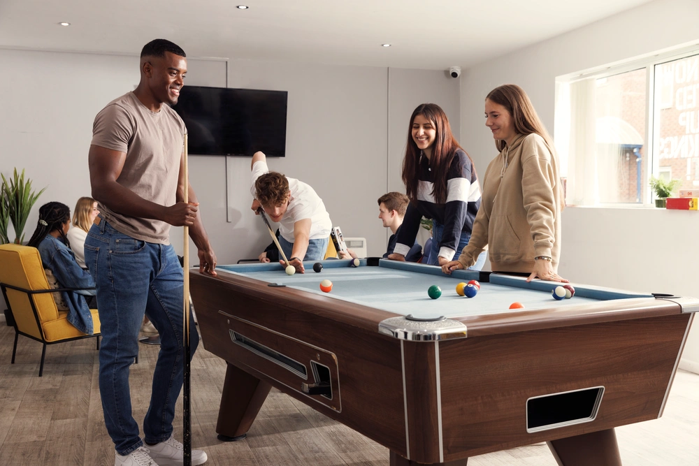 公寓设施比较齐全,公寓有学习室、游戏区(乒乓球桌、台球桌)、休息区、庭院、洗衣房等,满足同学们学习、休闲、社交的需求;配有前台、24小时安保、24小时监控,安全感满满~