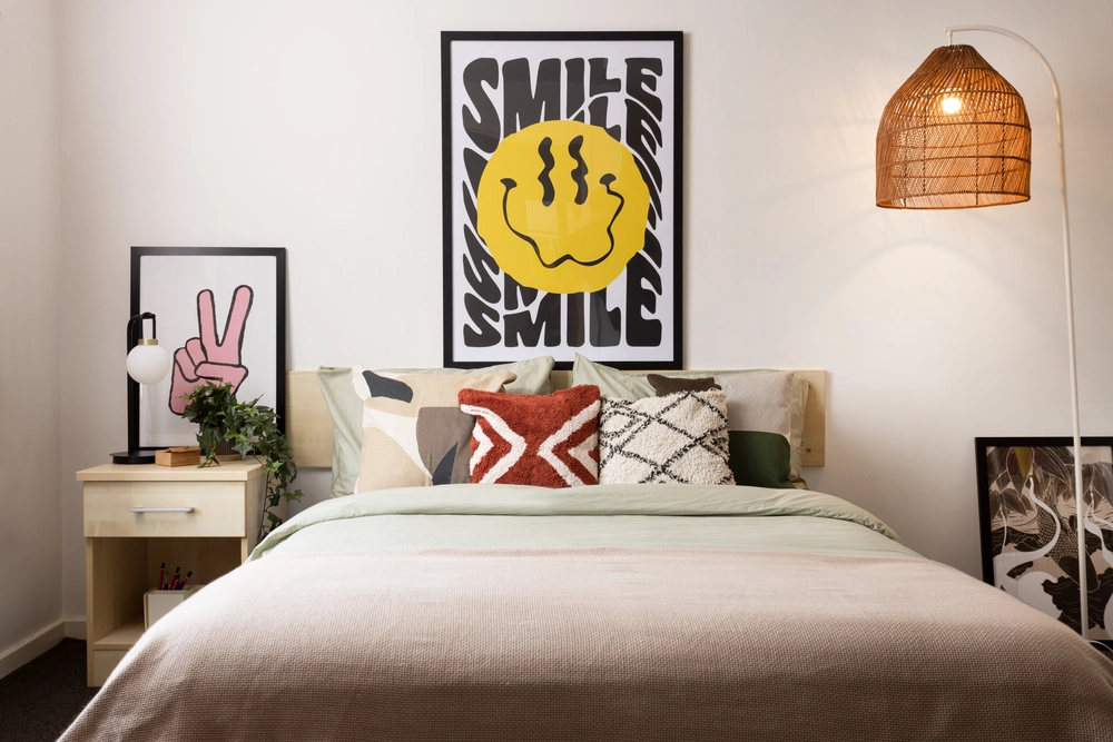 公寓主要提供Ensuite房型,有独立卫浴、共用厨房,一般是4-7人间,是喜欢社交的学生的最佳选择。房间配有双人床、书桌椅、衣柜等,有充足的储物空间。厨房配有灶台、冰箱、烤箱等。