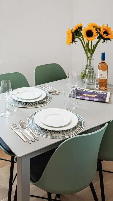 公寓设施完备,包括现代化、设备齐全的厨房,配有集成电器(如电炉、冰箱和洗衣机);用餐区配有餐椅和餐桌;浴室经过高标准装修,配有高规格配件和饰面(如浴缸和花洒淋浴)。此外,公寓还提供舒适的休息室,配有沙发、椅子、台灯和大地毯,供租客放松休息。