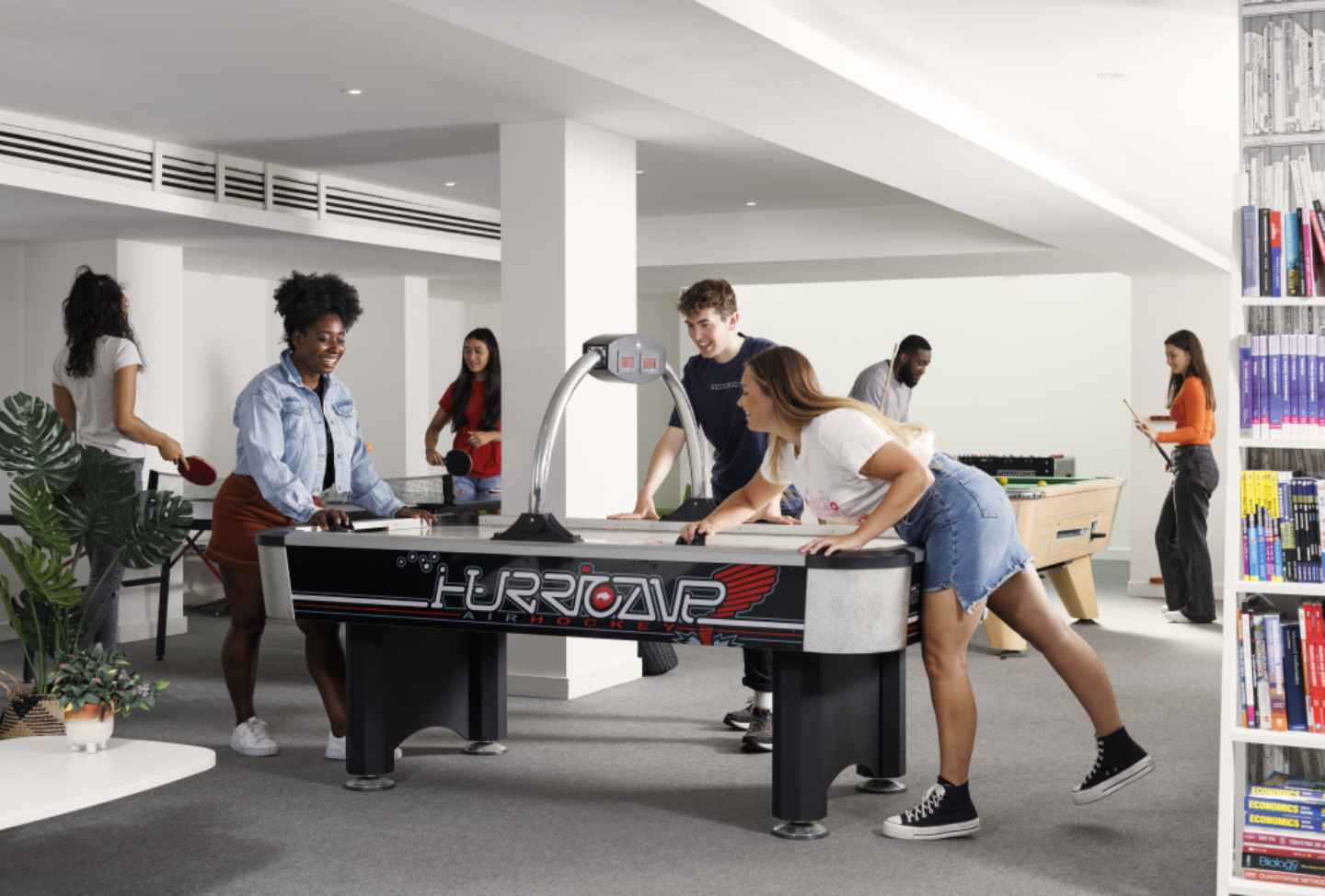 公寓设施:24 小时安保 + CCTV 监控 + 现场工作人员 + 24 小时呼叫中心,安全无顾虑;公共区域含健身房(24 小时免费使用)、电影放映室、游戏区(台球桌 / 乒乓球桌 / 桌上足球 / 空气曲棍球 / PS4)、专属自习区,社交学习两不误;提供洗衣房(支持 APP 操作)、自行车存放处、电梯、自动售货机,还有免费社交活动,居住体验超出色~
