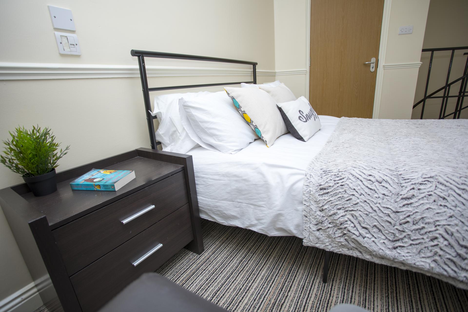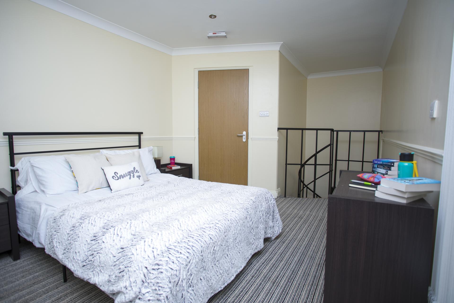 Studio(套房)具体房型如下:Classic Studio(经典套房),4英尺双人床,13平方米;Deluxe Apartment(豪华套房),分为上下两层,上层为厨房,下层为卧室以及独立卫浴,双人床,18平方米。 公寓部分房间为Sheffield Hallam University学生提供。