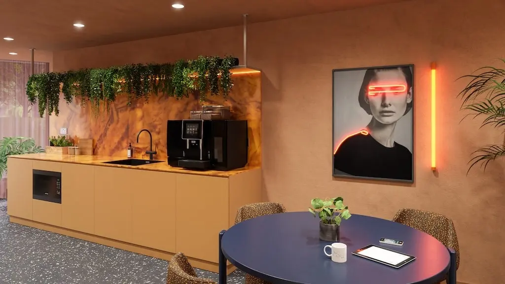 ensuite:面积10-13平,为6-9人套间,每套均配置独立卫浴和共享厨房,厨房配有电磁炉、冰箱、微波炉、烤面包机和水壶,以及用餐区域。