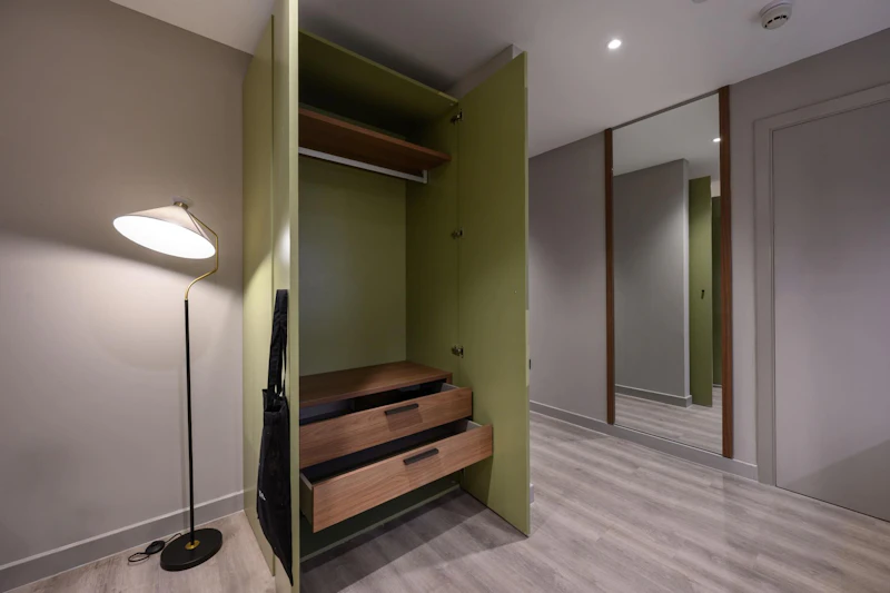 房间内部:均为 Studio 房型,空间设计合理;配小厨房(能简单做饭)、套间淋浴间(隐私性好)、精选家具;窗户可正常开合,暖气全覆盖(应对爱丁堡冬天),无空调(夏季气候舒适)。