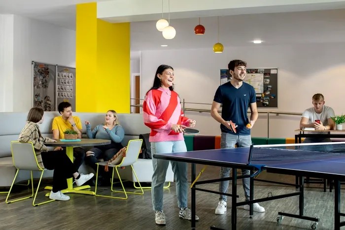 房间内部:Ensuite面积约 13㎡,多为 5-7 人间,Studio面积为18-30㎡,有充足的储物空间放行李和日常用品,非常适合行李多的同学进行选择。房间内均配备的是英国标准小双人床(1.2×1.9);所有房间窗户均能打开进行通风,并且冬天暖气很足,住得舒服又温暖。