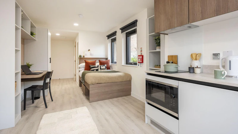 公寓主打En-suite(4-6人共享厨房)和少量Studio,公寓配备智能门禁系统、高速网络覆盖、独立卫浴套间,满足日常生活所需。公共区域设有24小时自习室、影音娱乐空间、24小时健身房,兼顾学习效率与休闲放松。