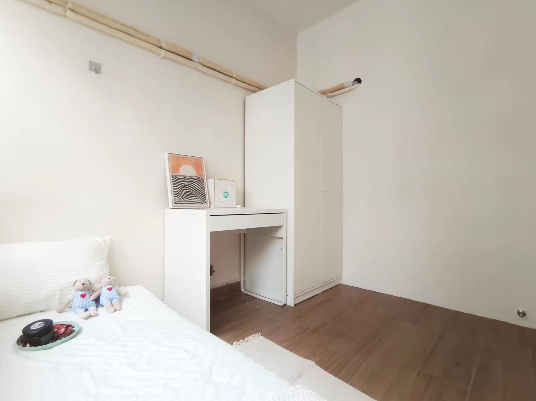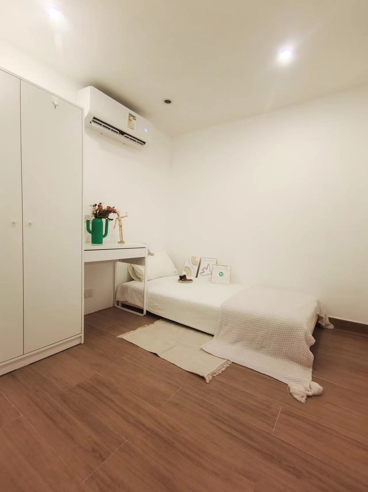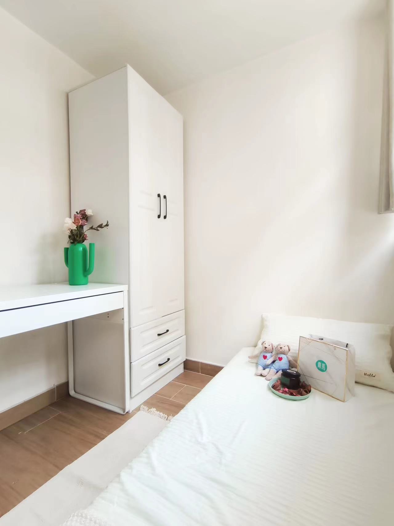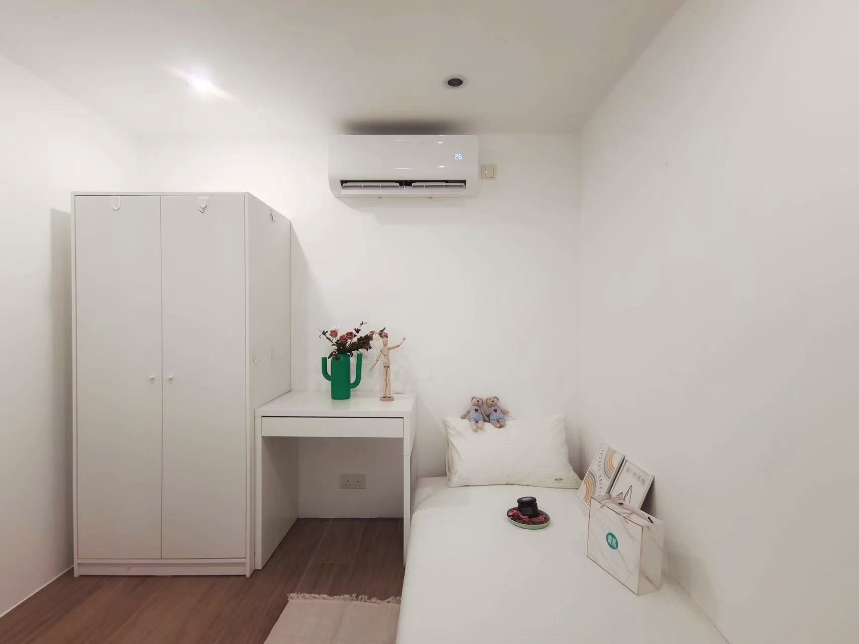 配置全套家具,拎包⼊住。包括⾐柜、床架、床垫、书桌、椅⼦、洗⾐机、冰箱、空调等