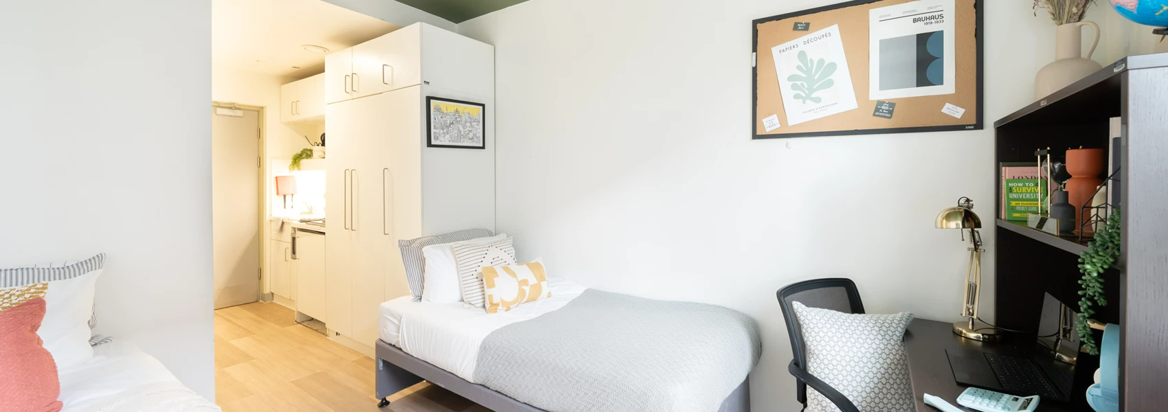 国王十字区烟火气拉满!步行 5 分钟到 Sainsbury's Local、Tesco Express 等超市,日常采购不用跑远;多元化购物中心、Anytime Fitness 健身房几步可达,学习间隙撸铁、逛街超便捷。美食选择超丰富:Coal Office、Ikoyi 等特色餐厅扎堆,解锁各国风味;国王十字区每周都有新餐厅、酒吧、画廊开业,夜生活和文艺活动超丰富。学术休闲两不误:毗邻大英图书馆、大英博物馆,赶 due 累了随时逛展充电;国王十字车站的哈利波特礼品店是打卡必去地,课余生活充实又有趣。24 小时安保加持,市中心治安靠谱,不管是独居还是合租,都能住得安心舒心~