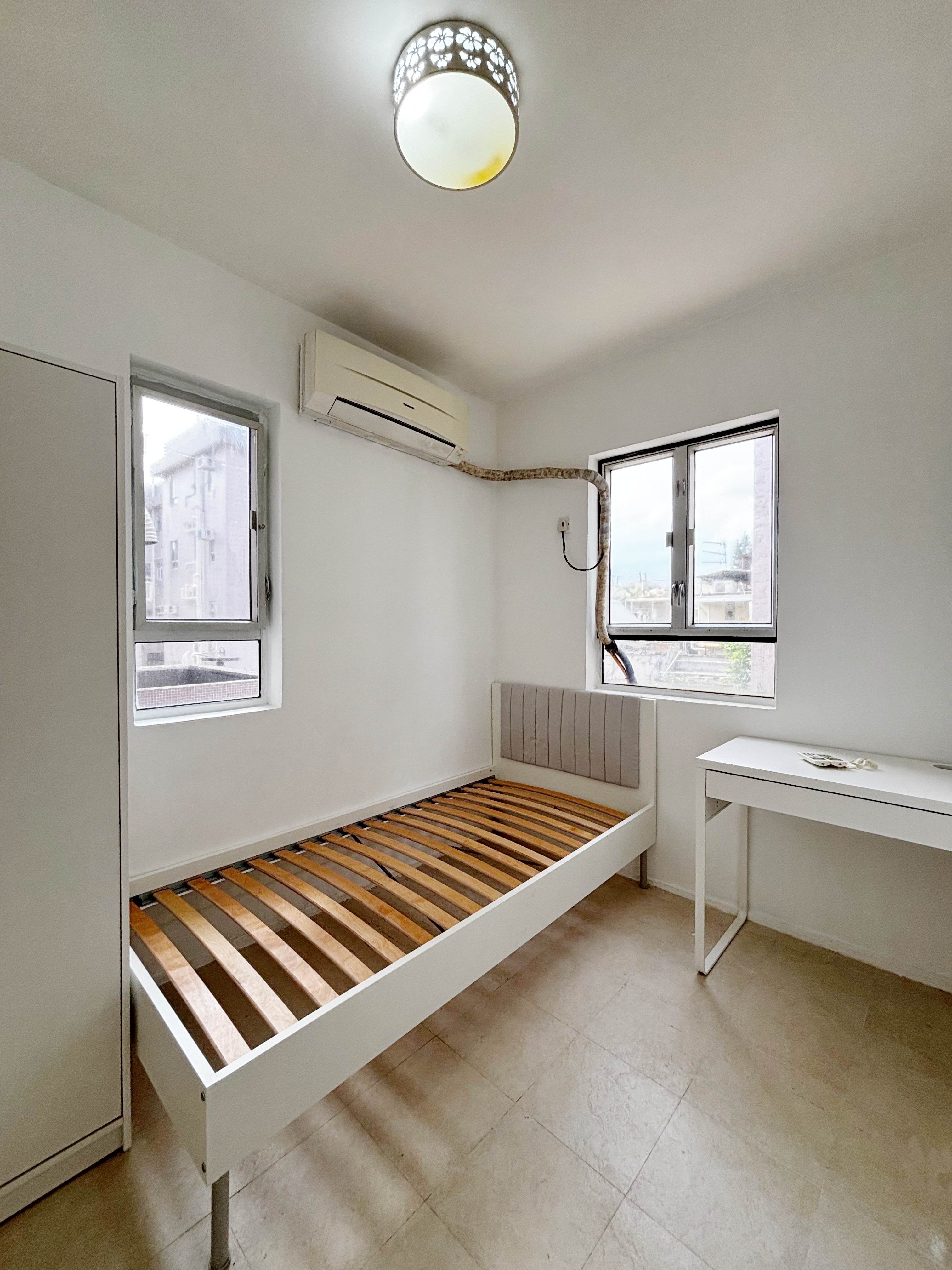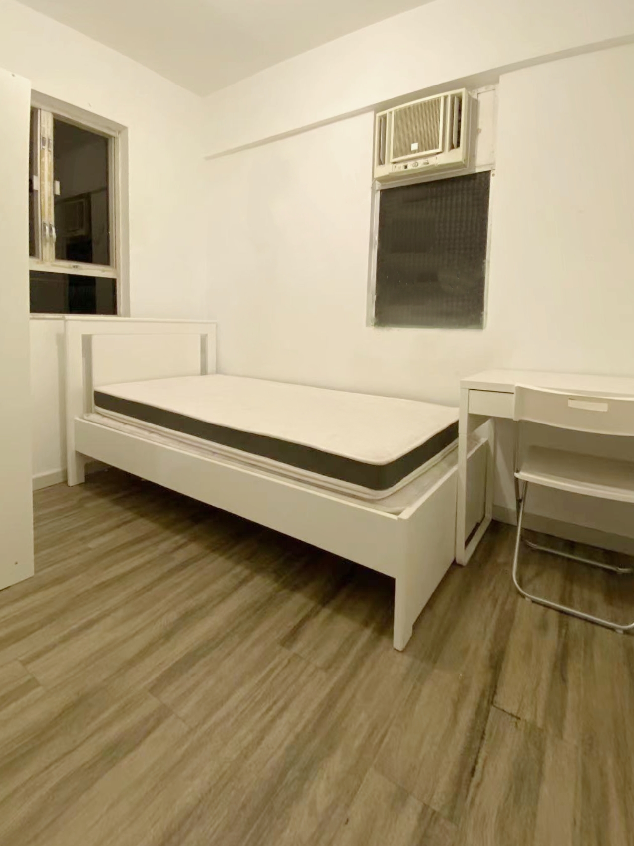 配置全套家具,拎包⼊住。包括⾐柜、床架、床垫、书桌、椅⼦、洗⾐机、冰箱、空调等