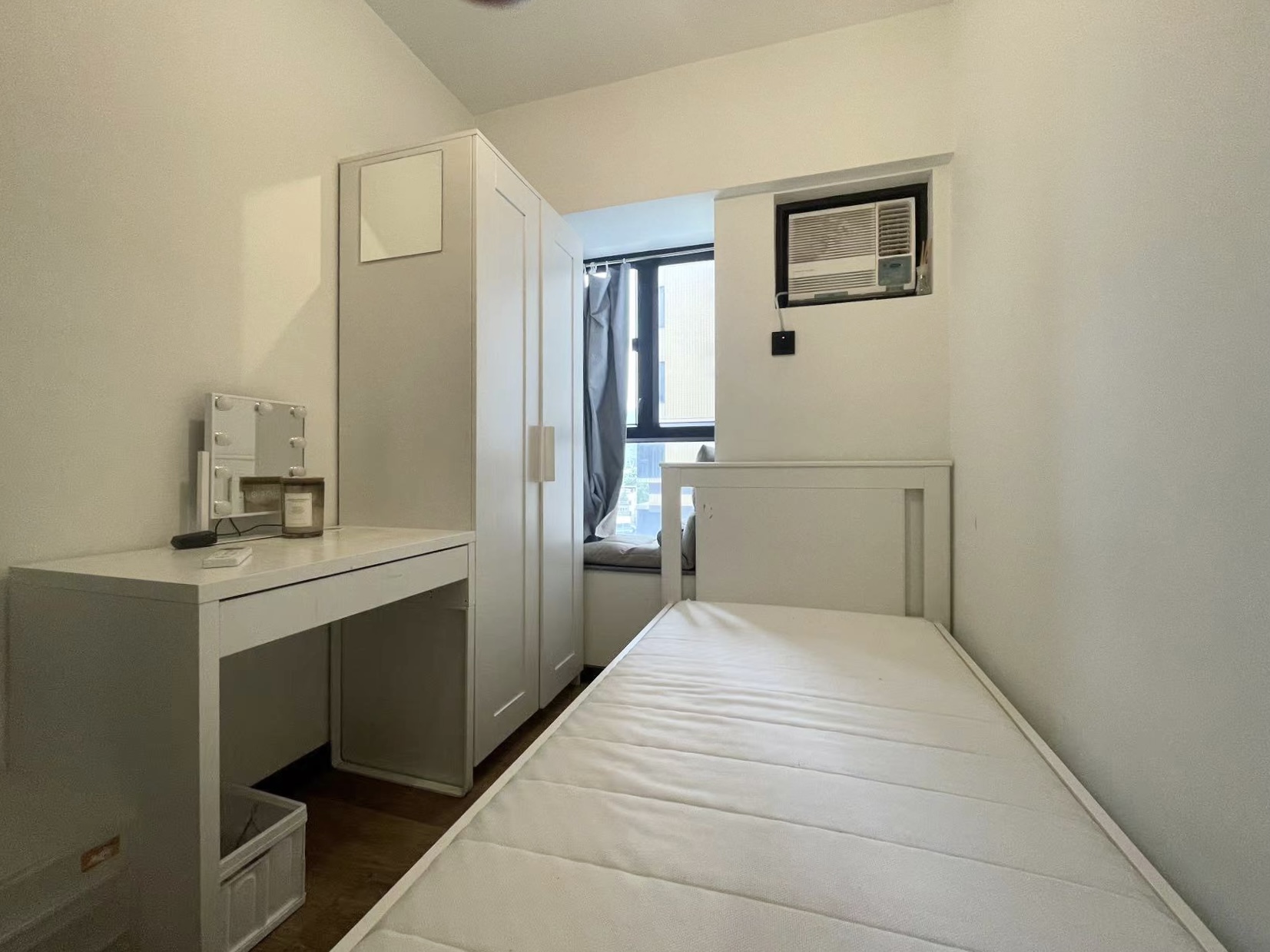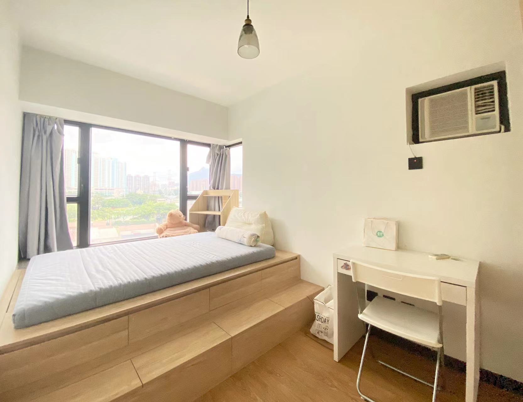配置全套家具,拎包⼊住。包括⾐柜、床架、床垫、书桌、椅⼦、洗⾐机、冰箱、空调等