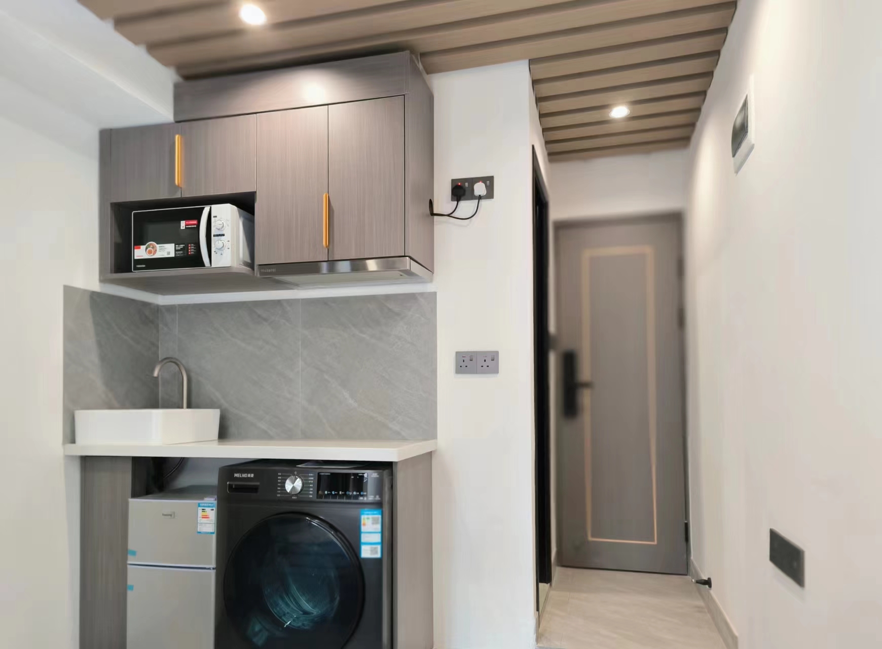 配套电器:每个套房均有挂式冷气机/洗烘一体机/微波炉/电磁炉/油烟机/热水器/吹风机