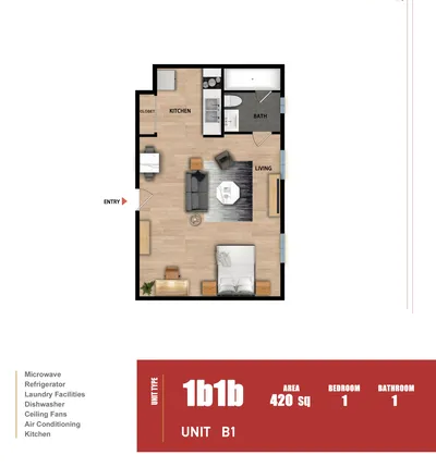 公寓提供舒适的居住环境,配备 24小时安保、免费Lyft服务、现场洗衣房 等社区设施,以及 空调、暖气、厨房电器 等室内便利设施,确保您的生活便捷又安心。无论是学习、购物还是休闲,这里都是理想之选!