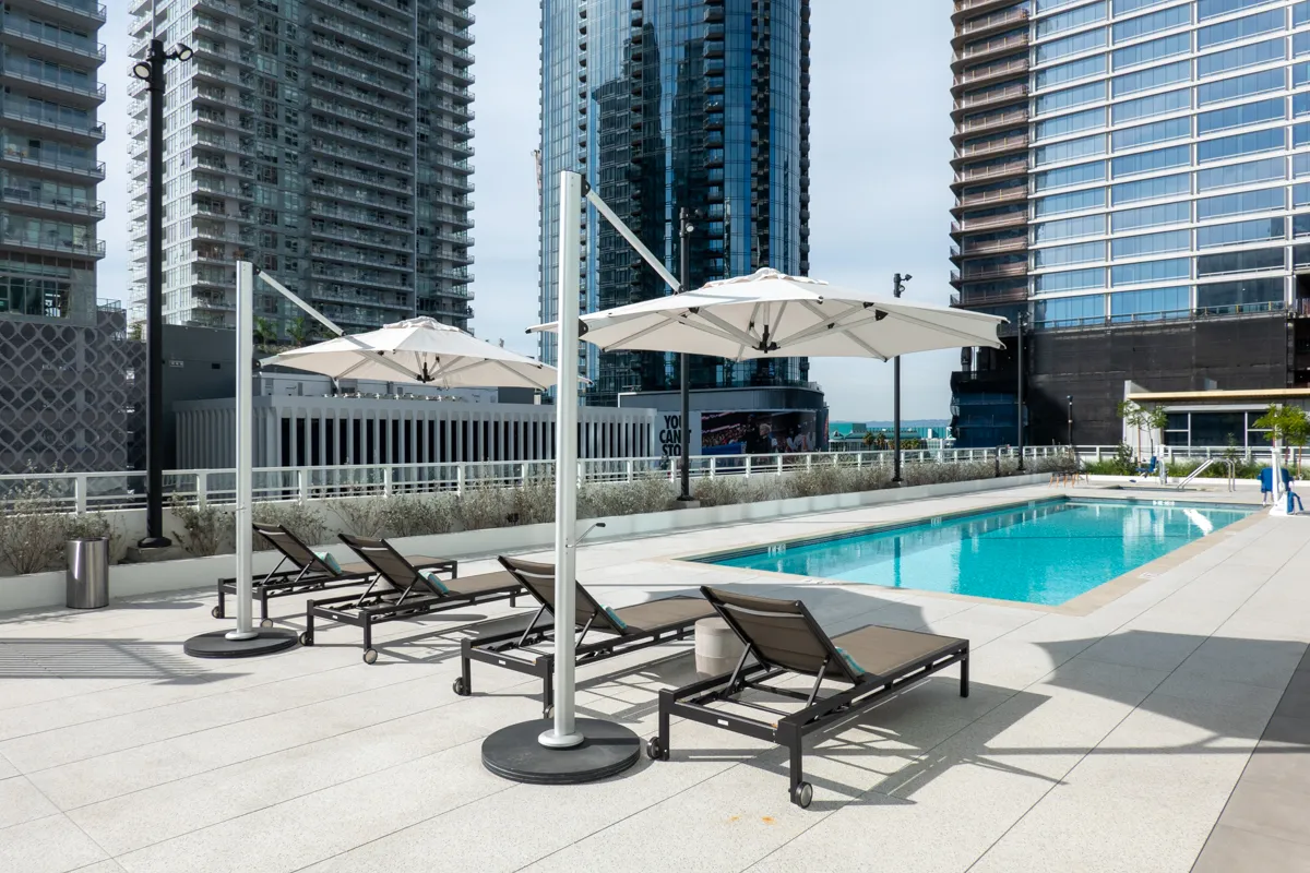 位于优质生活区,步行6分钟可达Ralphs Fresh Fare超市和Fixins Soul Kitchen餐厅,10分钟至Whole Foods Market和JOEY DTLA。社区提供丰富公共设施,包括泳池、屋顶露台、健身中心、狗狗公园及24小时门禁。室内配备齐全,含独立洗衣机/烘干机、洗碗机、阳台等,满足日常需求,打造便捷舒适的居住体验。