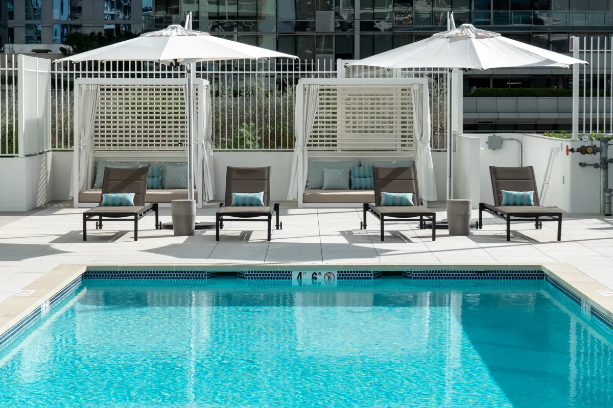 休闲娱乐:泳池、屋顶露台、健身中心、按摩浴缸