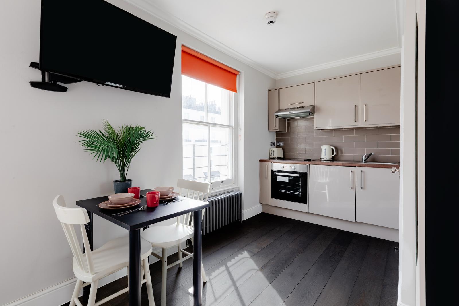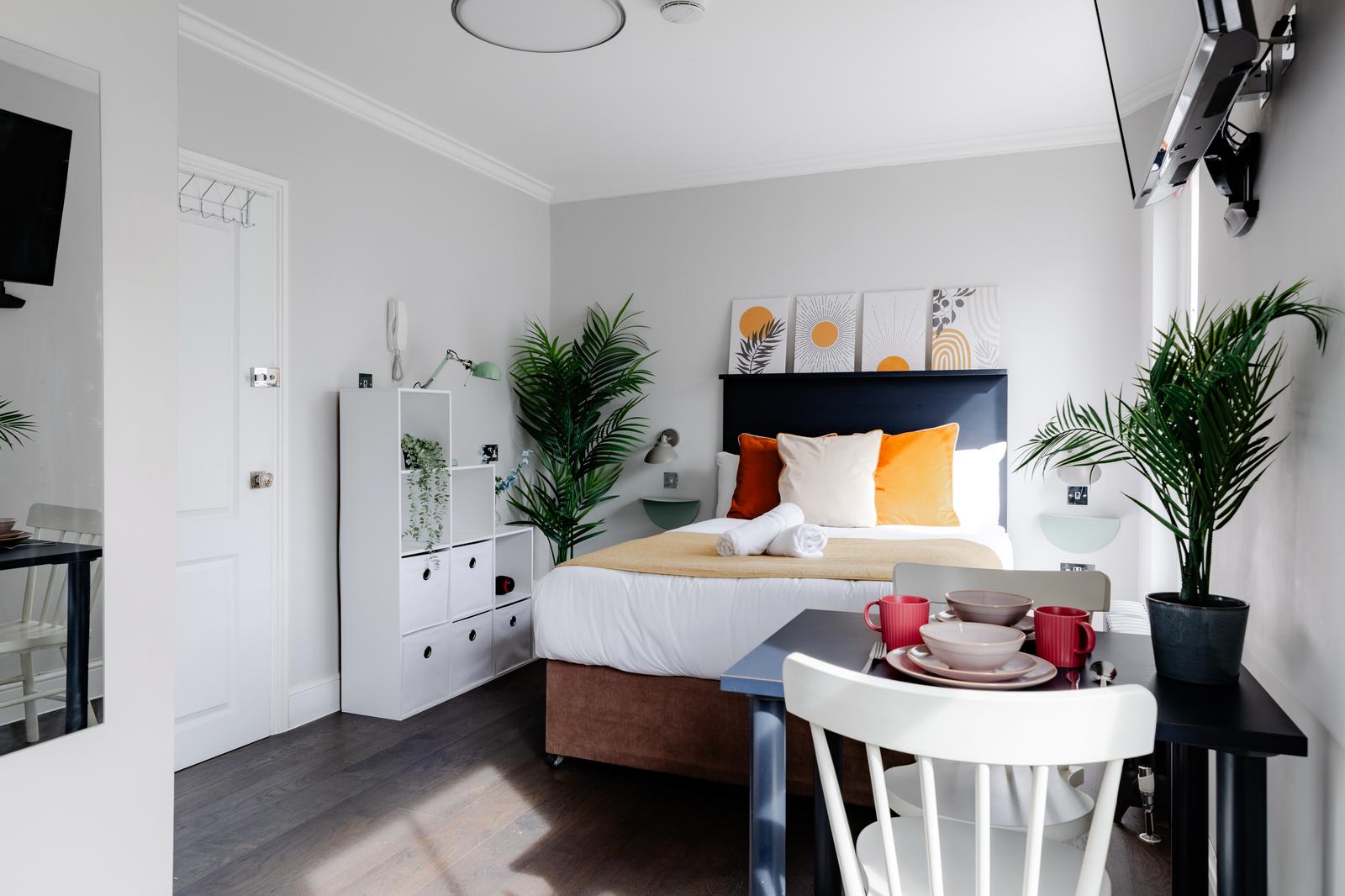 Hazel Court 共5层,无电梯,所有户型都是studio,内部包含独立的卫浴、厨房、冰箱、电视机等所有设施。