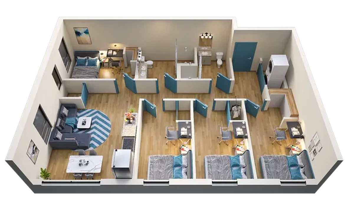 舒适居住体验:全屋家具、独立洗衣房、不锈钢厨房、中央空调、高速WiFi