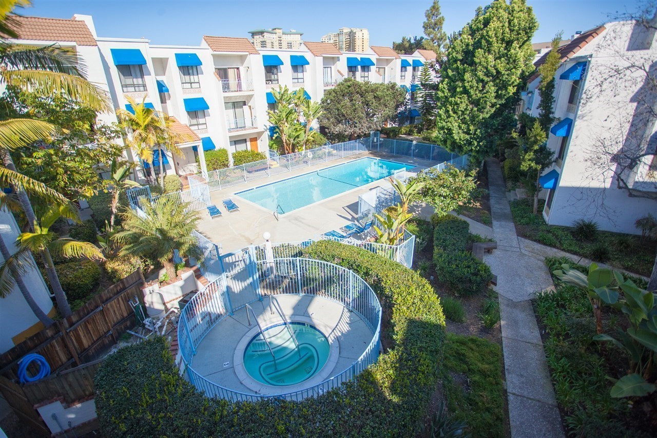 公寓地理位置优越,距离UCSD仅1.8英里,交通便利,公交17分钟(Superloop首站保证座位)、开车6分钟或骑车13分钟即可到达。租金包含水费和垃圾处理费,电已开通,可拎包入住,并可协助开通网络。公寓提供两个室内车库($40/个)和24小时限时访客停车位,配备门禁系统、游泳池以及同一楼层的投币式洗衣房,生活便利。周边步行9分钟可达Vons超市、银行和各类餐厅,生活配套齐全。