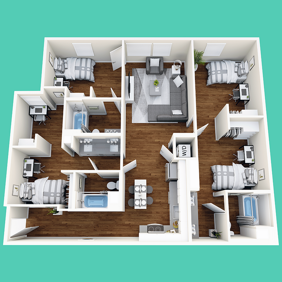 公寓步行17-25分钟即达加州大学戴维斯分校及戴维斯大学,提供全家具配置的私人/共享卧室(均含独立卫浴+双人洗漱台),配备智能门禁、USB插座及洗衣设备。社区内设恒温泳池、24小时健身房、多层自习室、KTV及宠物SPA,满足学习与休闲需求。