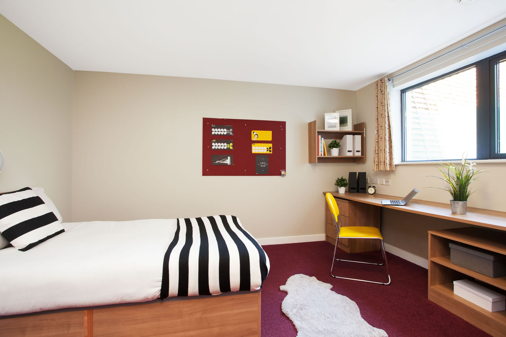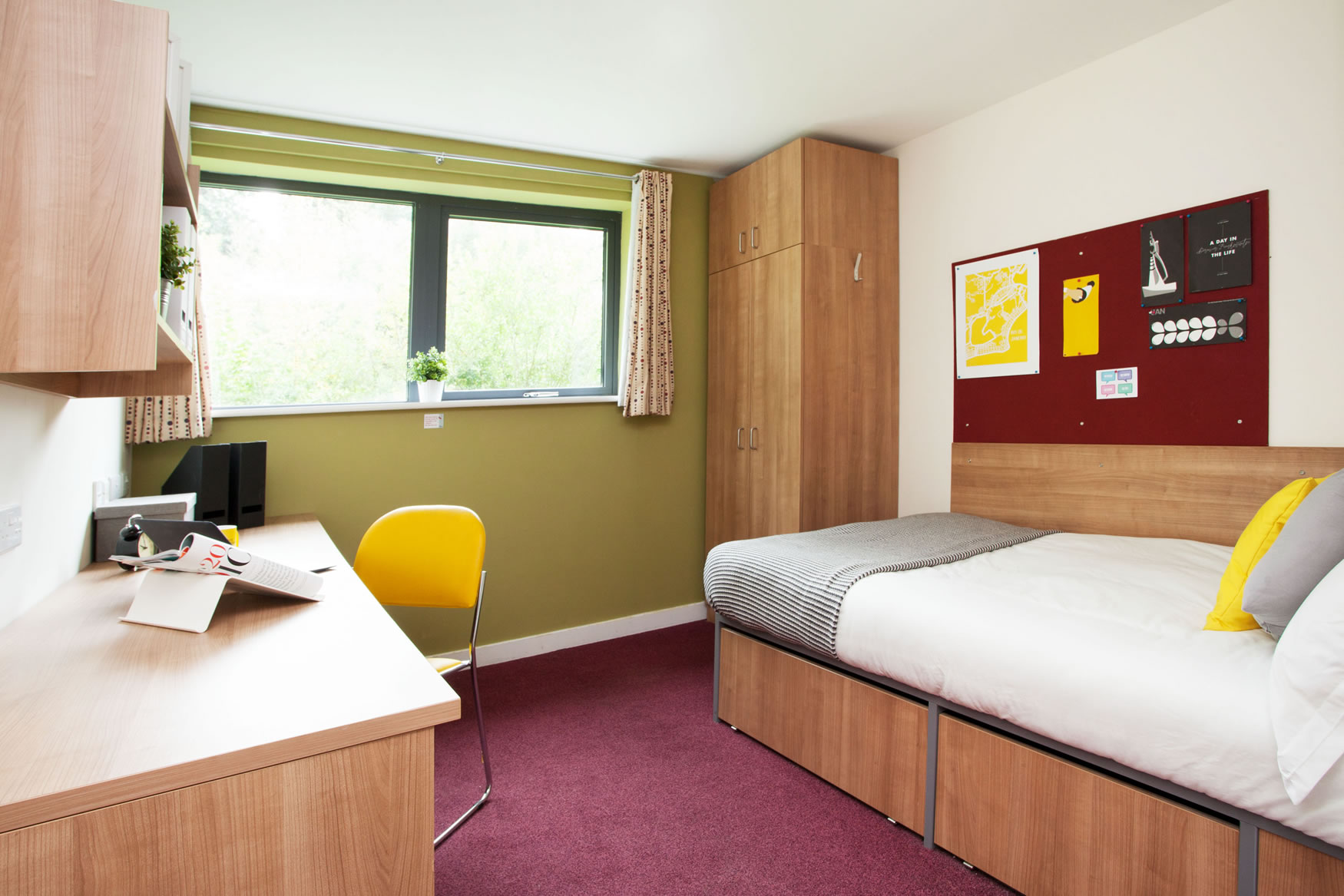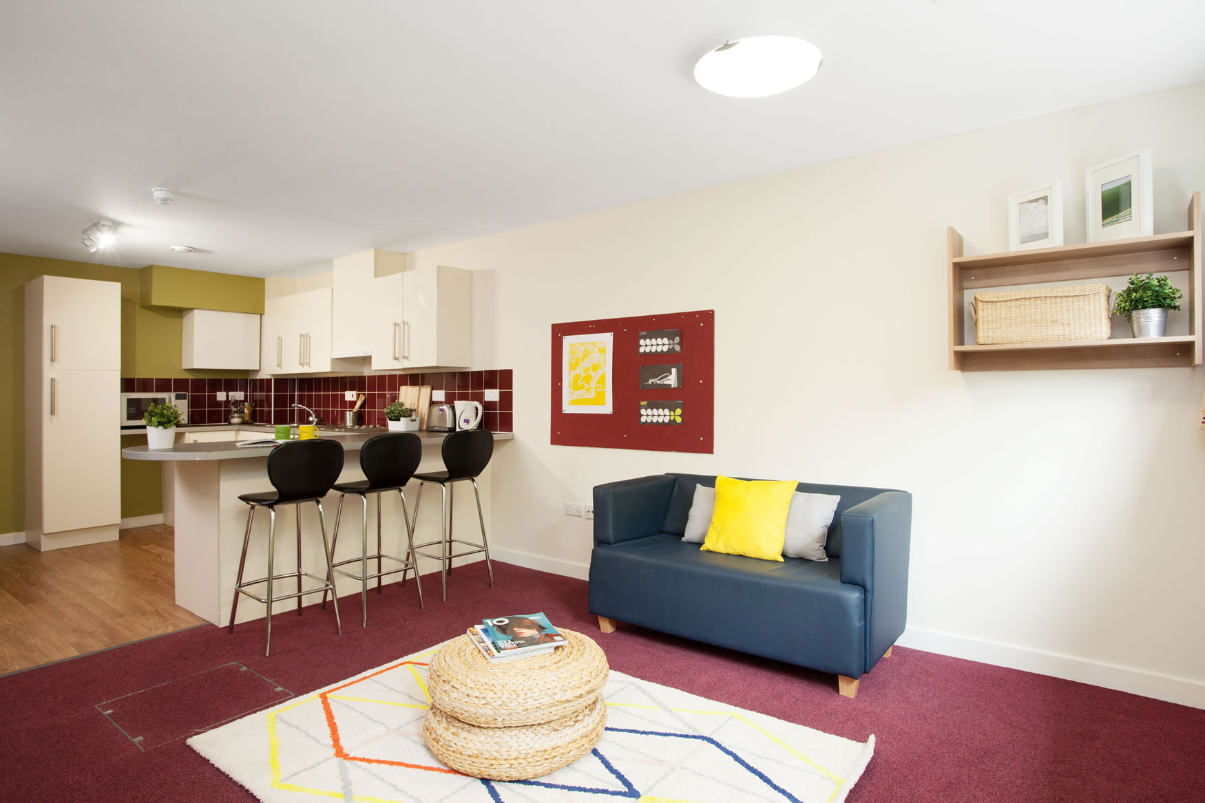 公寓提供Ensuite、Studio 和one bed房型。ensuite 房型独立卫浴、共用厨房,一般是4-8人间,是喜欢社交的学生的最佳选择;Studio和one bed房型独立卫浴、独立厨房,为学生提供更私密和自在的个人空间。 房间配有双人床、书桌椅、衣柜、穿衣镜等,有充足的储物空间。厨房配有灶台、冰箱、烤箱等。