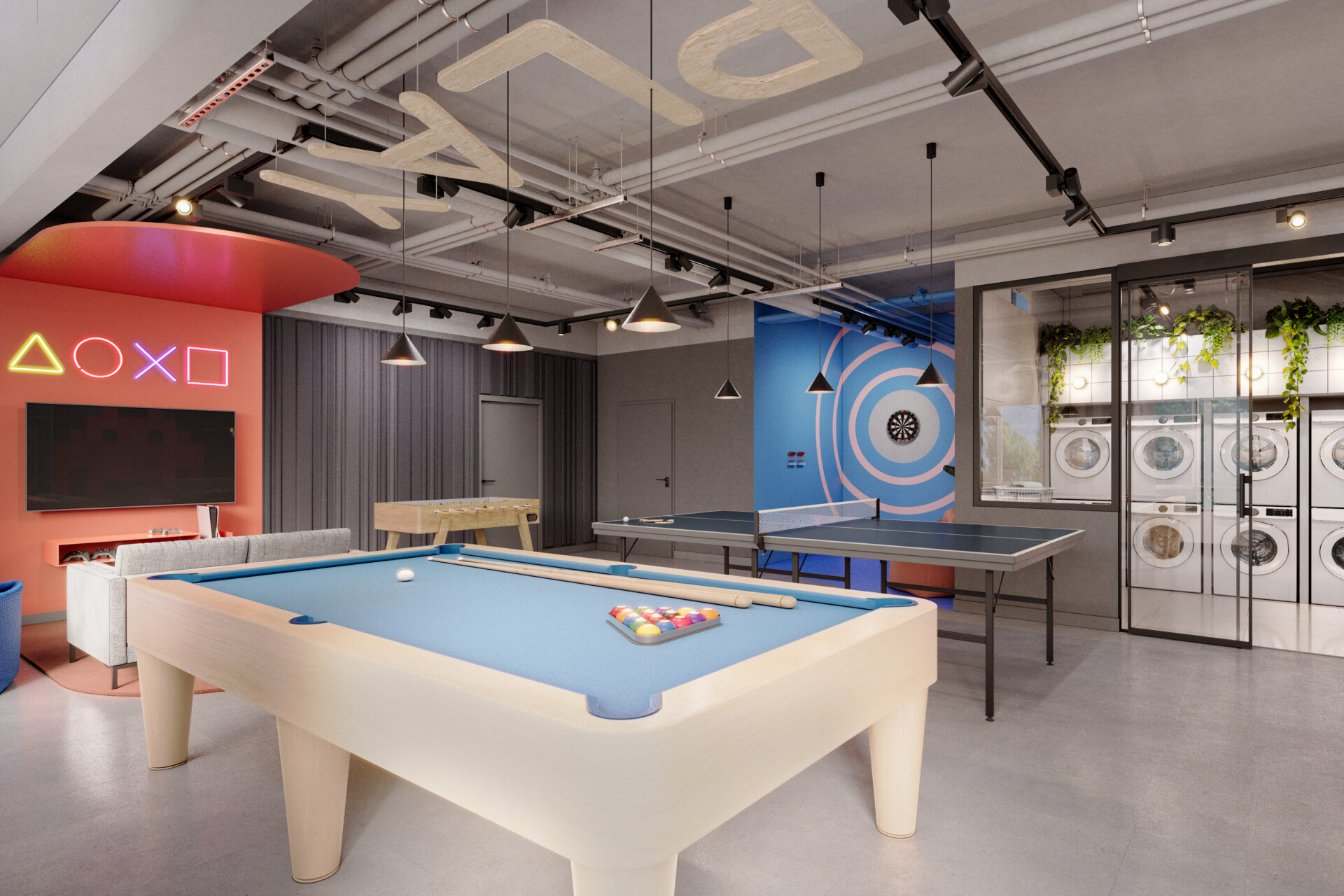公寓位于华沙核心教育区,步行20分钟即达华沙医科大学,36分钟至华沙经济学院,适合学生与学者居住。社区内设健身室、影音室、共享厨房等多元休闲空间,兼顾学习与社交需求。周边步行4分钟即享巴基斯坦与泰式餐厅,25分钟可达亚洲超市,生活便利。内部设施注重功能性(如工作室、会议室)与创意性(艺术室、媒体室),满足学术与兴趣双重发展。