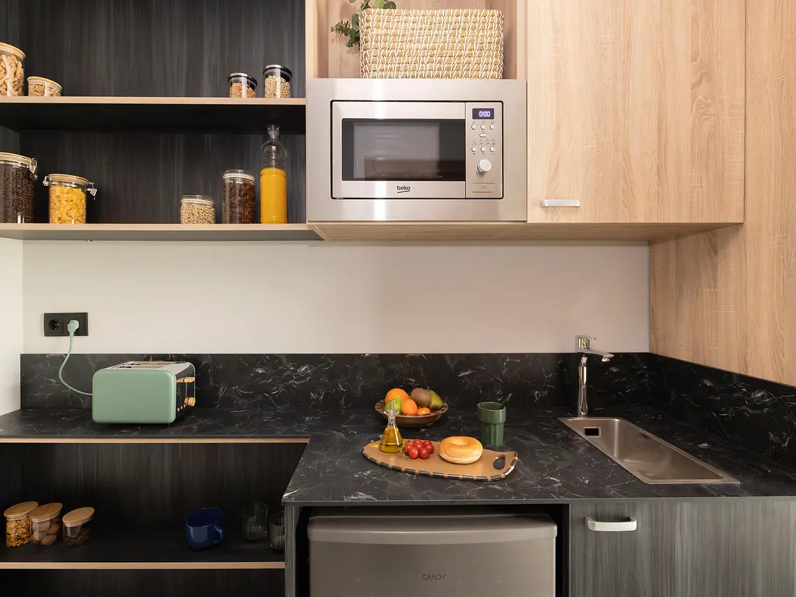 公寓提供单人间和双人间,空间设计适合学生生活,提供多种设施,如包含所有公用设施费用、有清洁服务、自习室、游泳池、游戏室、露台、健身房、洗衣服务、电视休息厅等。