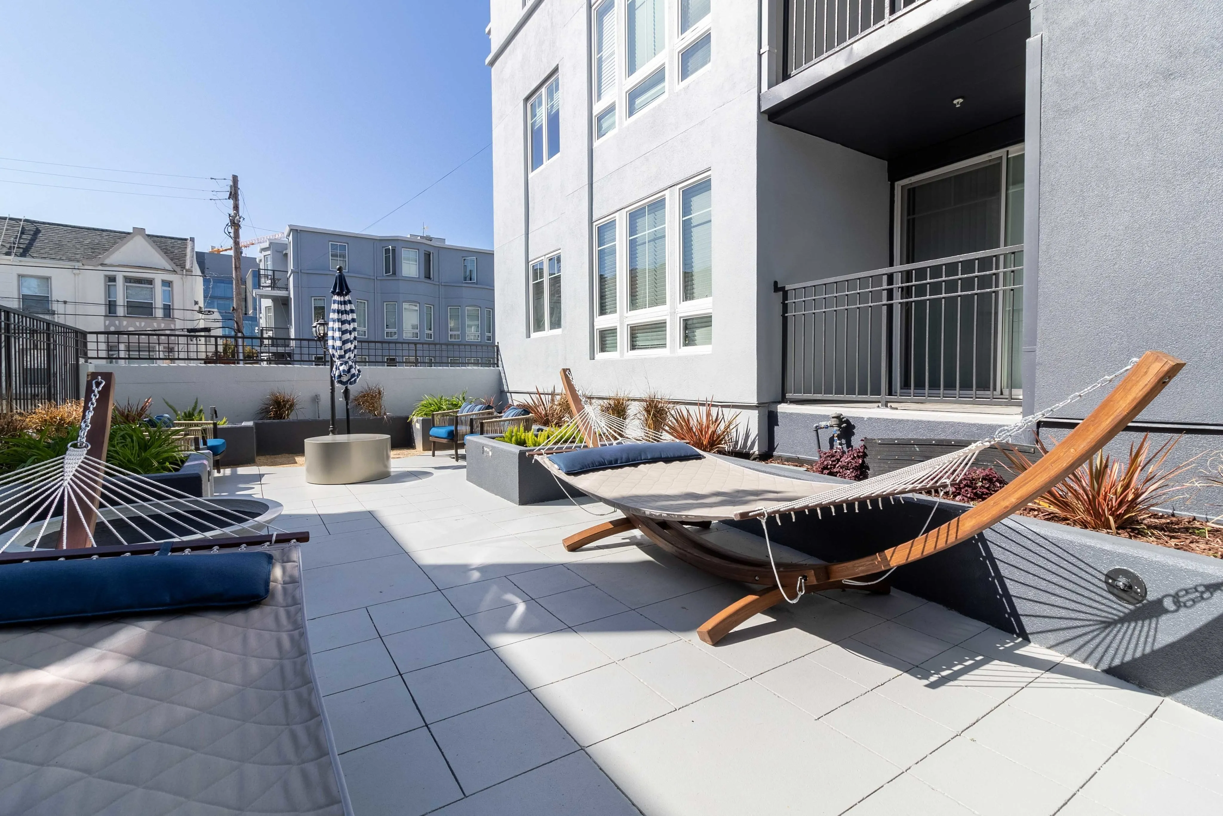 公寓有维修团队、门禁管理等安全保障,社区内设休闲露台、公共休息区及自助洗衣房。室内标配洗衣机/烘干机、不锈钢电器等现代化设施,升级房型含私人阳台。地理位置优越,步行10分钟可达加州大学伯克利分校,周边Trader Joe's、Target等商超及多国风味餐厅林立,满足学习生活全方位需求。