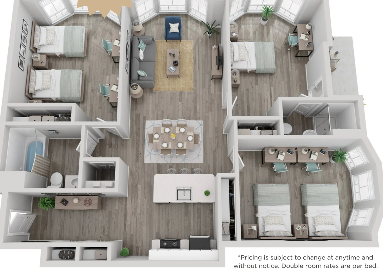 免责声明:所显示的照片代表了此房型。但不能准确反映出房型的实际尺寸、布置或陈设。具体尺寸请参考房型描述,详细布局请向番茄咨询。