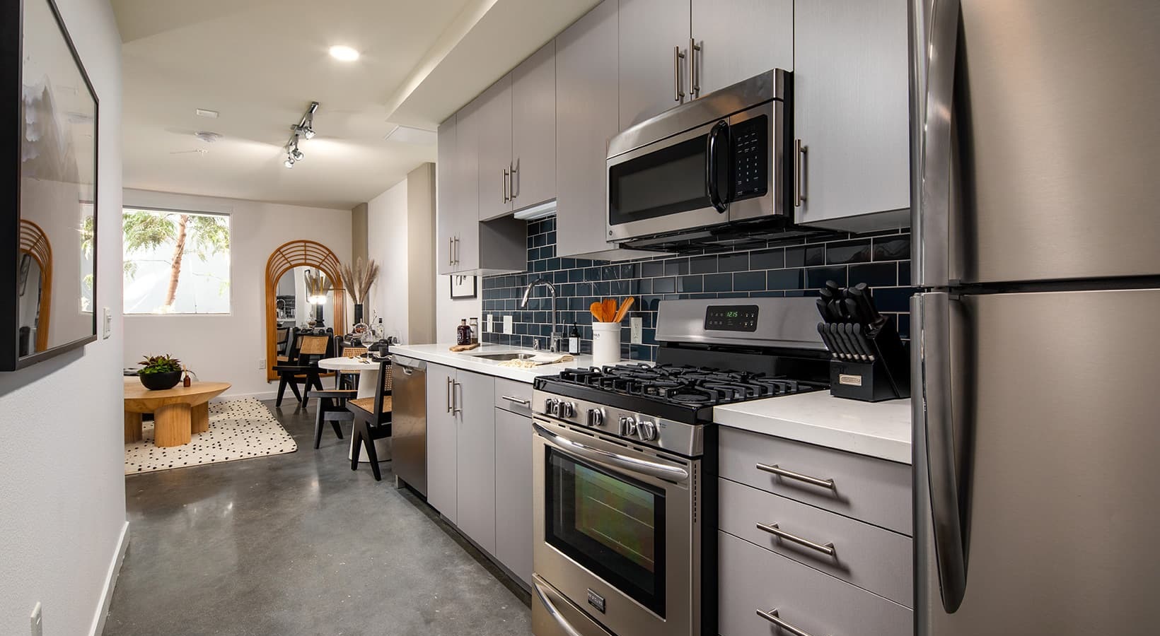 公寓位于核心地段,步行8分钟直达金门大学,公交18分钟至南加州大学,周边1分钟即达超市,餐饮购物极其便利。社区配备24小时健身中心、双屋顶花园、泳池露台及创意办公空间,满足学习、健身与社交需求;室内采用不锈钢家电、隔音窗及高端台面,部分房型含步入式衣柜及私人阳台,打造舒适智能生活空间。