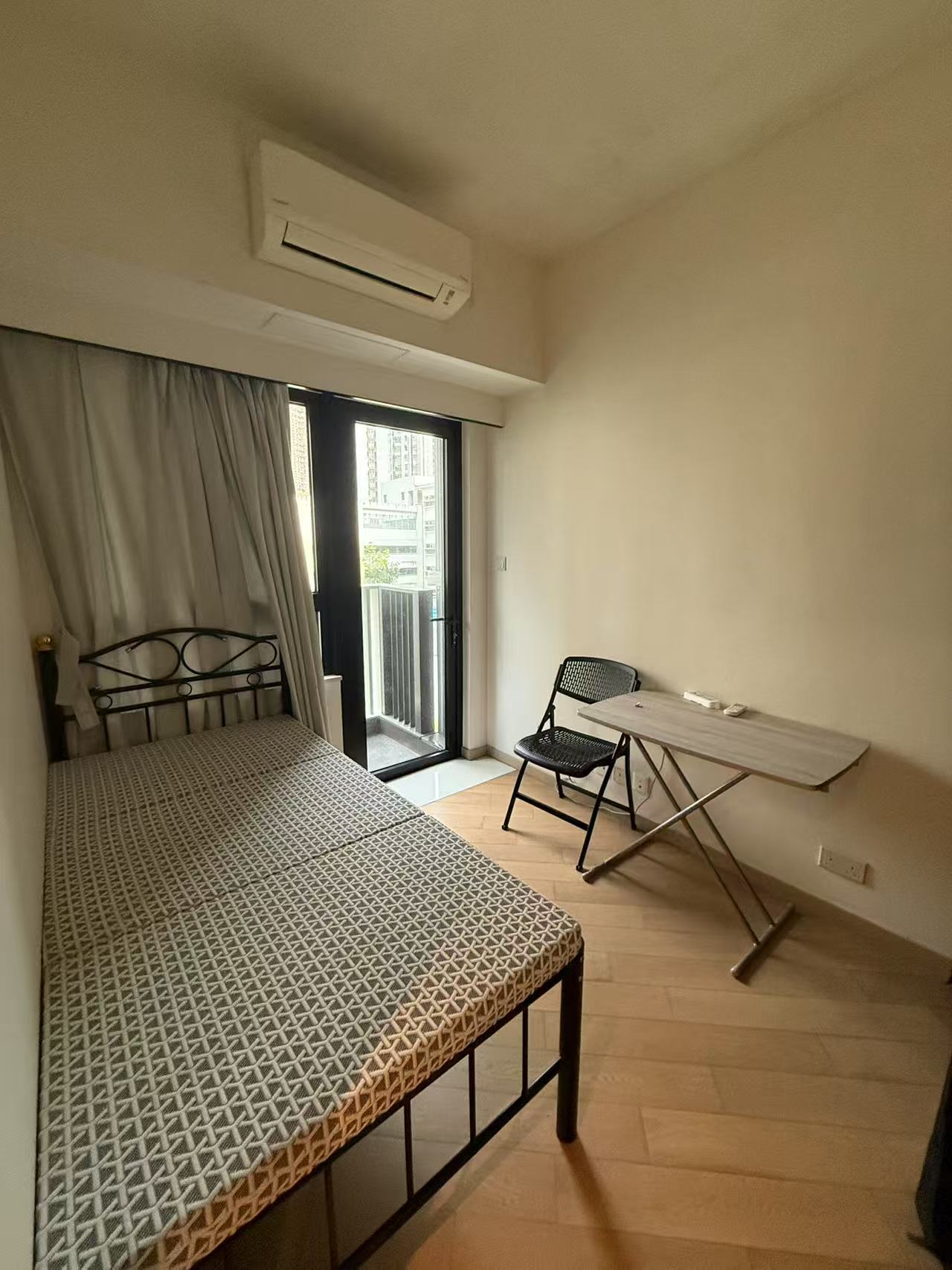 提供家私:床、床垫、衣柜、书桌、椅子、枕头、垃圾桶、被子、床上三件套