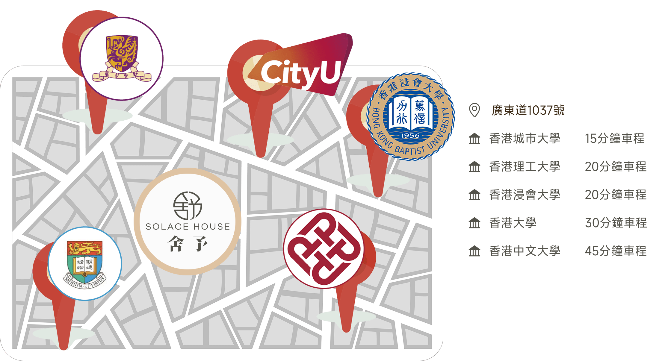 搭乘地铁或巴士,10-15分钟可达香港城市大学;