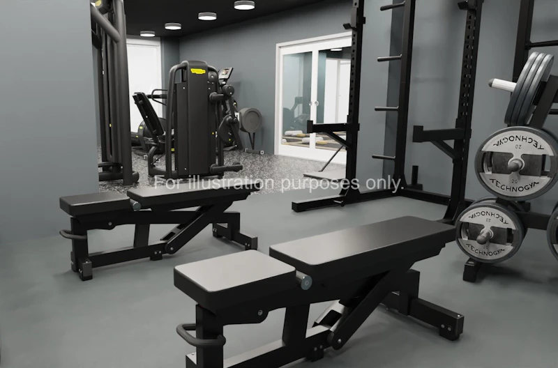 健身房(1 楼,24 小时开放,配跑步机、哑铃,不用额外办卡);