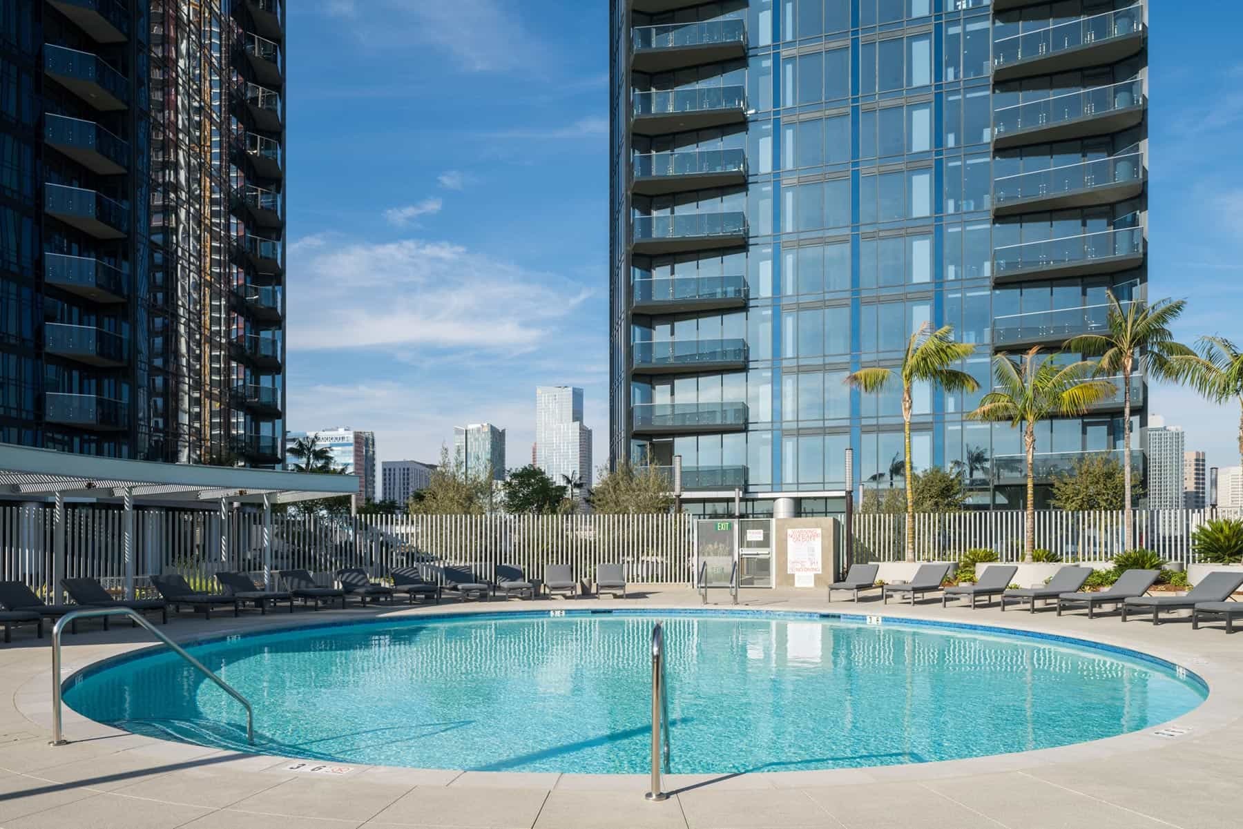 公寓坐落于优越地段,拥有两英亩奢华屋顶公园和丰富完善的配套设施,为住户提供高品质都市生活体验。公寓内设度假式椭圆泳池、75英尺标准泳道泳池、户外瑜伽区、单车工作室等高端健身空间,以及配备台球桌的运动酒廊、室内外休闲酒吧、私人餐厅等社交场所。屋顶观景台可饱览城市天际线,户外烧烤区和带壁炉的聚会空间为住户提供绝佳的社交体验。生活配套方面,公寓设有共享办公空间、安全自行车存放处,以及配备宠物美容室的大小型犬公园,充分满足各类需求。地理位置十分便利,公交15分钟直达南加州大学,步行10分钟内可达Ralphs和Smart & Final超市,周边还有Lazy Dog美式餐厅和Le Petit Chef法式餐厅等餐饮选择,是追求品质生活的学生和年轻专业人士的理想之选。