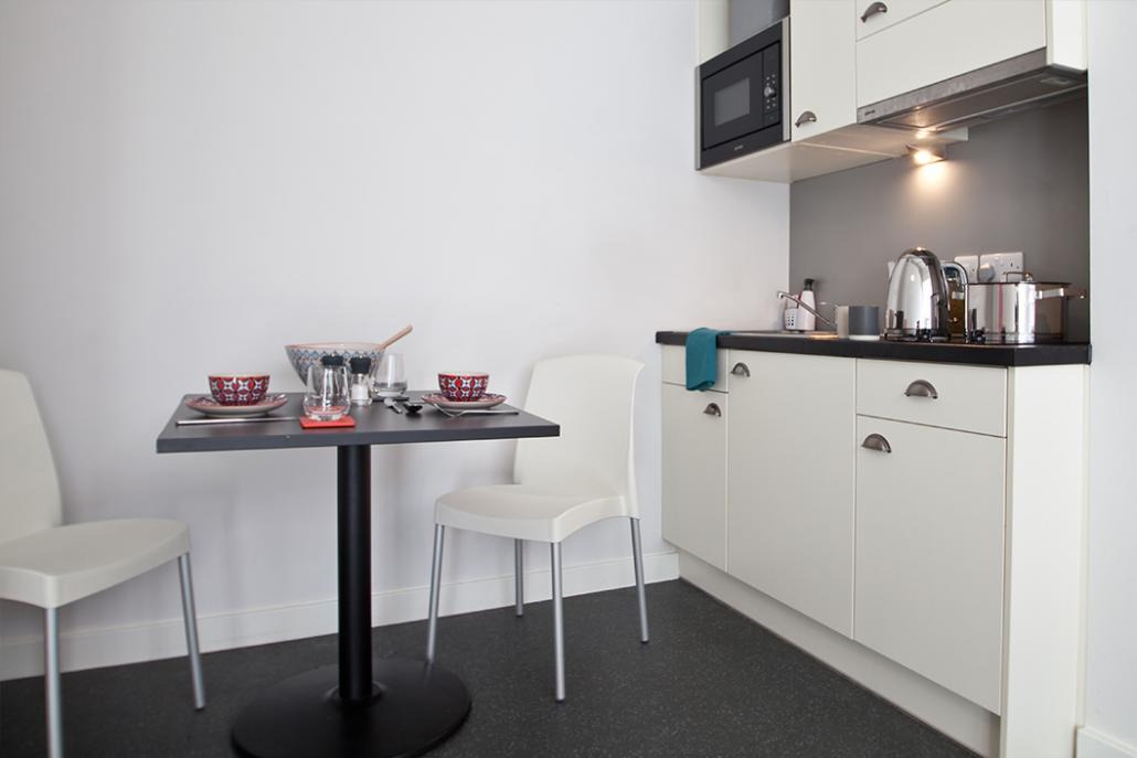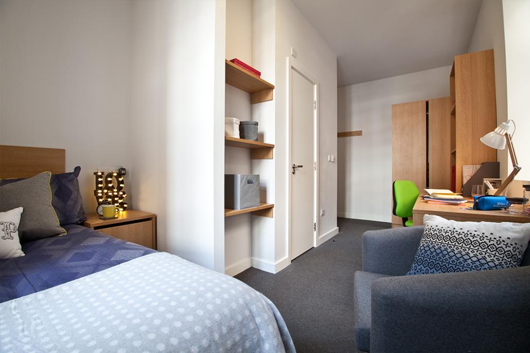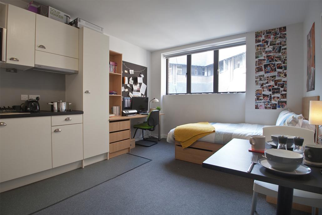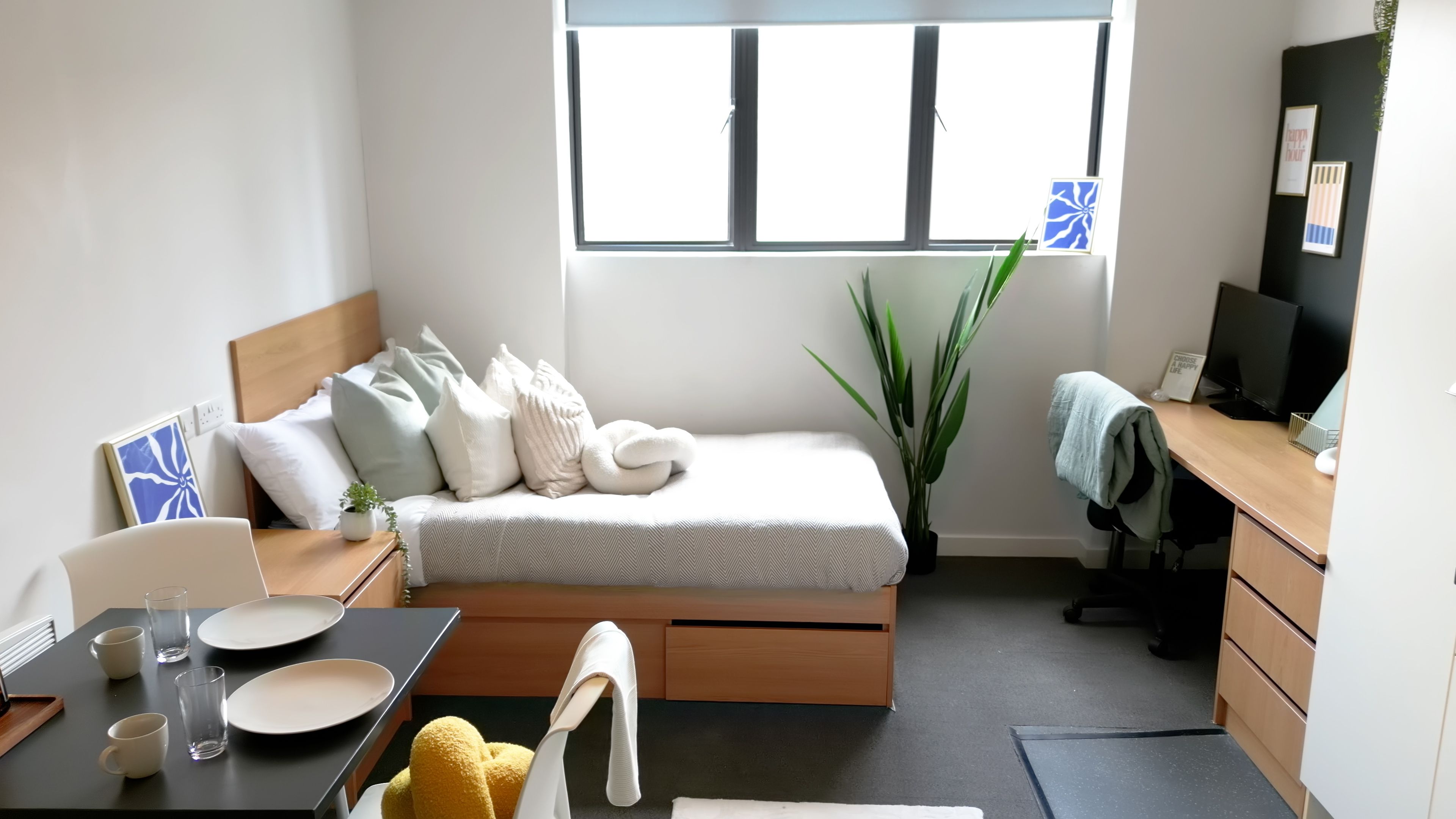 公寓房型设计贴合留学生居住需求,Ensuite 与 Studio 各有特色。Ensuite 房型:公共区域宽敞,既方便舍友交流互动,又能保留独立卧室的私密空间,适合喜欢轻度社交的学生;Studio 房型:空间独立完整,起居、烹饪、休息区域划分清晰,满足追求专属生活空间的需求。两种房型均配备全套家具,含舒适床具、书桌、衣柜及储物架,无需额外购置;基础厨房用品齐全,日常烹饪便捷;房间窗户采光充足且可正常开启,保障室内通风,搭配完善暖气系统,适配利兹气候,冬季居住温暖;免费 WiFi 全覆盖,网速稳定支持线上学习、文献查阅。