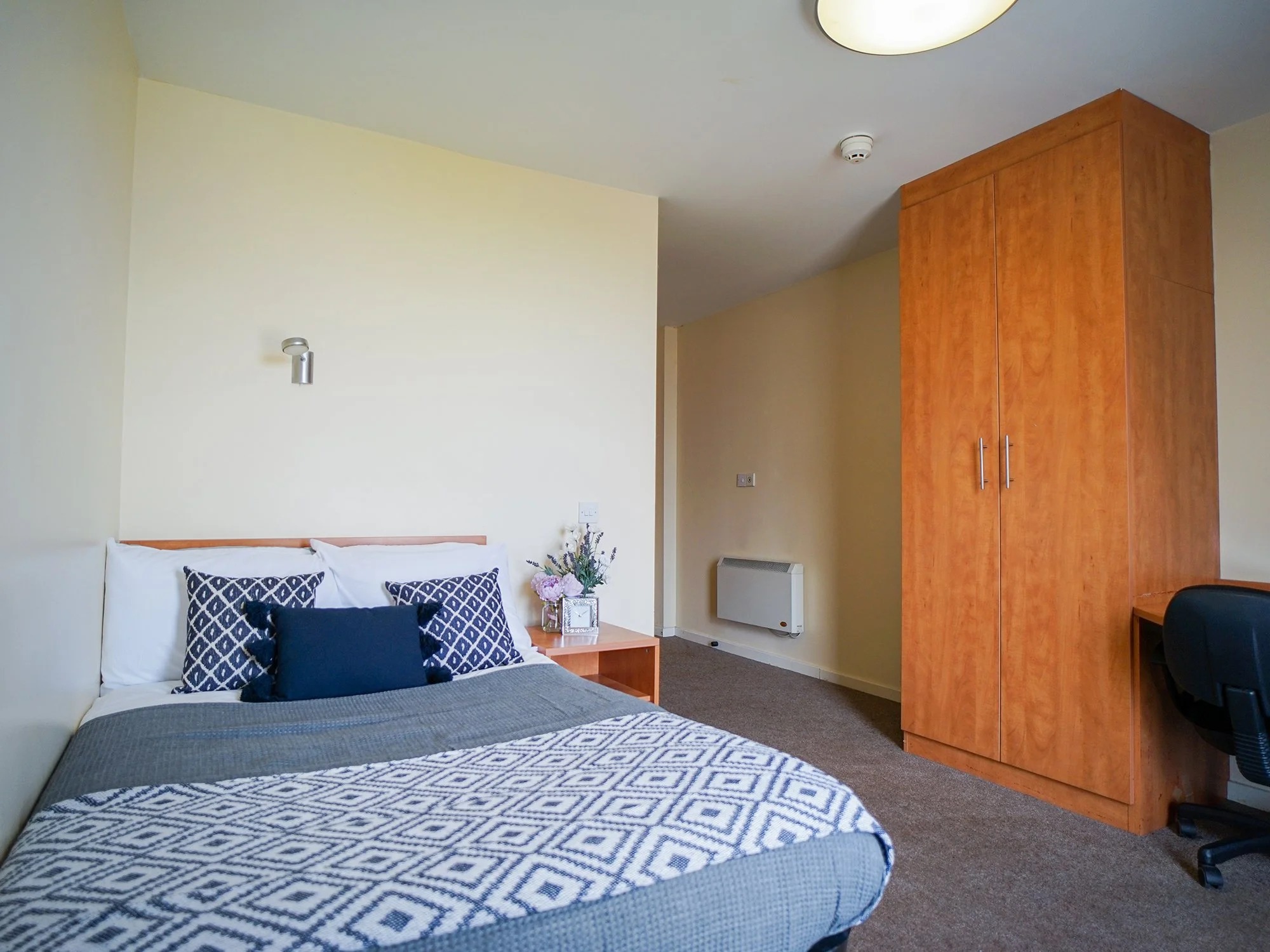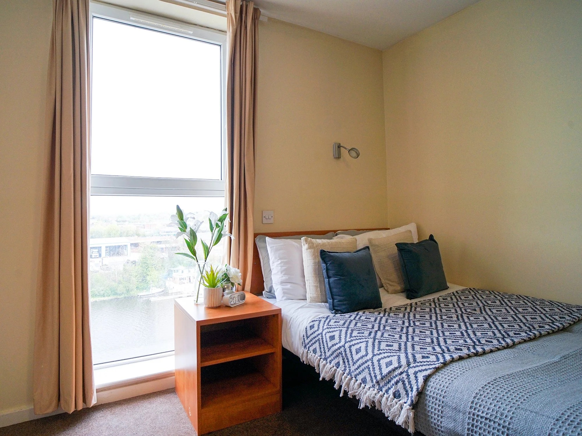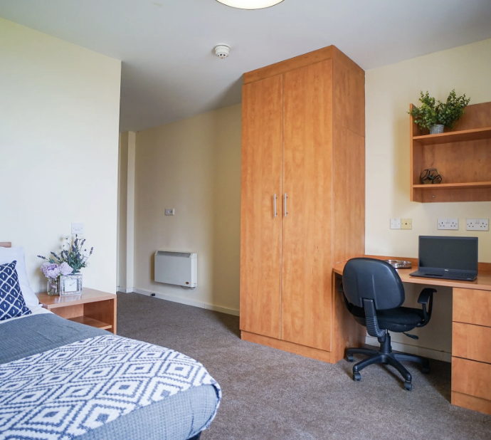 公寓位于斯托克顿市中心附近,紧邻各类生活设施,周边有超市和商店,日常购物、采购食材等需求可轻松满足,生活便利性高。同时,公寓坐落在河畔,能欣赏到优美的河景,且靠近市中心的各类活动场所,既方便融入当地生活,又能在闲暇时享受河畔风光,兼顾生活便利与环境舒适度。房间配备 32 英寸新电视、新地板、家具和粉刷墙壁,厨房有独立可锁冰箱和橱柜及现代化电器。24 小时 onsite 员工和闭路电视监控确保安全;每周有专业清洁服务(厨房、浴室每周 3 次,卧室和浴室每两周 1 次);经验丰富的物业经理(Ceri,拥有 15 年国际学生服务经验)和工作日维修团队提供支持。