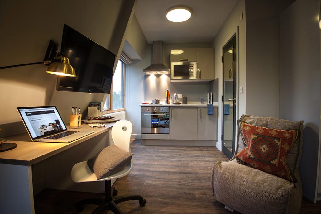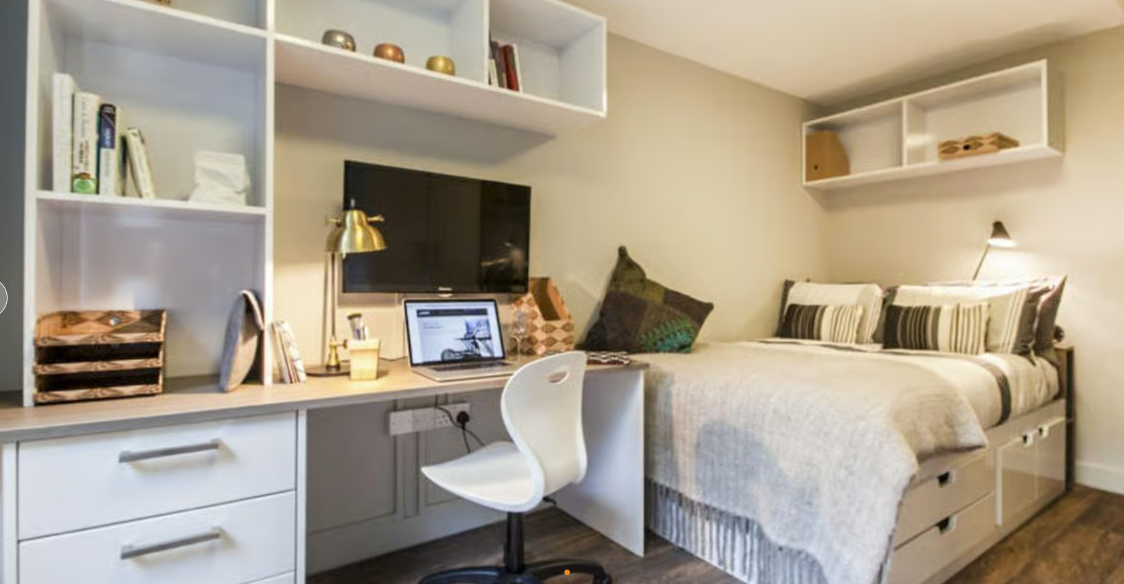 寓内部提供了完善的生活设施和周全的服务,旨在为学生创造一个安全、舒适的居住环境,生活与休闲设施:公寓内配有公共休息室、娱乐区(如台球区)、学习室、洗衣房、自行车库和花园,Halsmere Studios 主要提供各种规格的 Studio(单间套房) 房型,均配备独立卫浴和独立厨房,私密性好。