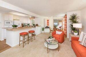 舒适户型配置:提供一居室及两居室户型,部分配备石英石台面、早餐吧、硬木风格地板及中央空调。