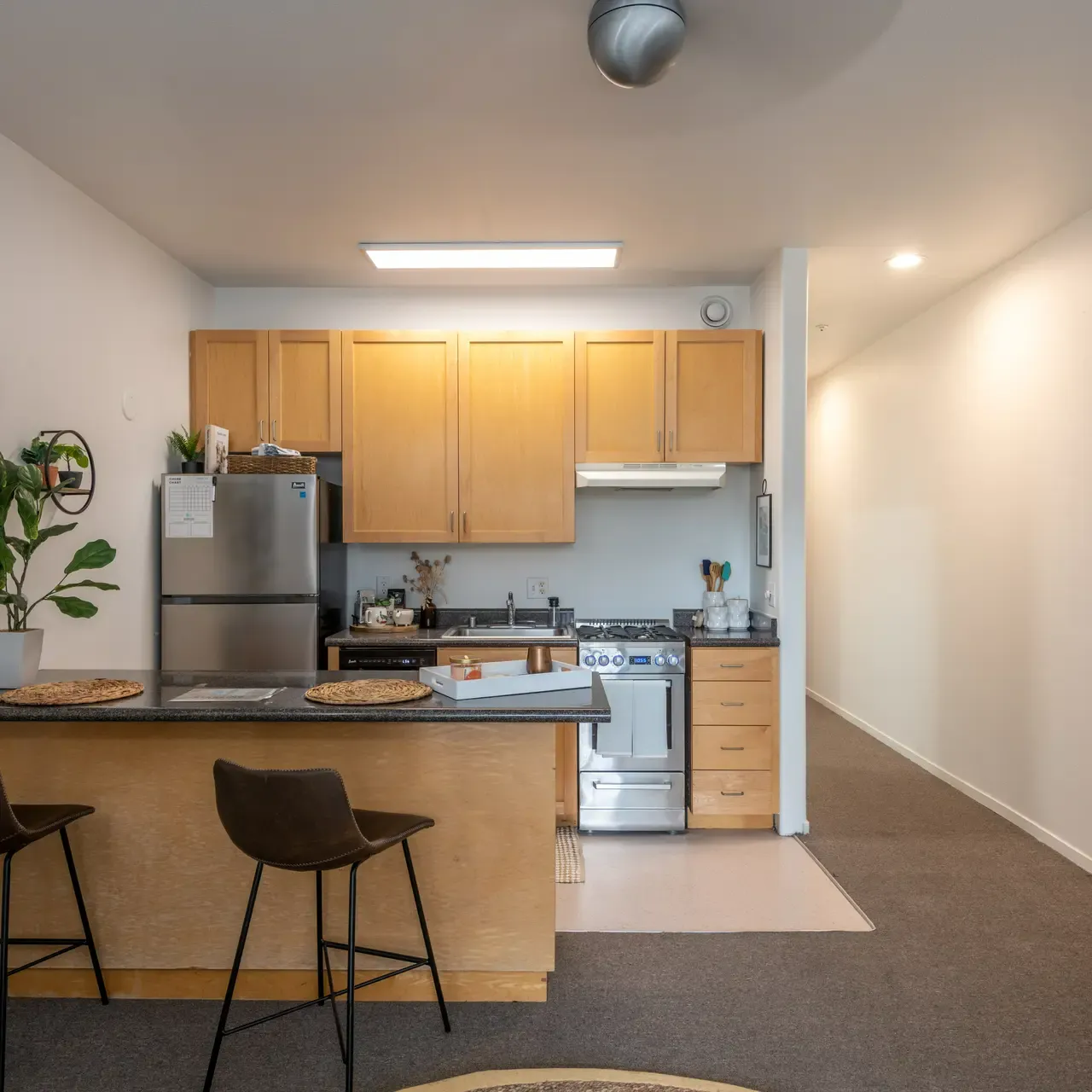 品质生活:公寓配备电梯,公寓提供A1 photo & video lab,室内洗衣机/烘干机、智能快递柜及地下车库;采用节能家电并获能源之星认证,提供多种户型可选,均为全新装修,装配石英台面与木纹地板。周围生活便利,更设有on site维护团队,可为学生提供紧急情况夜间服务。部分户型配备私人阳台。