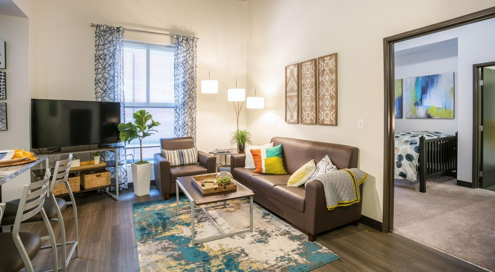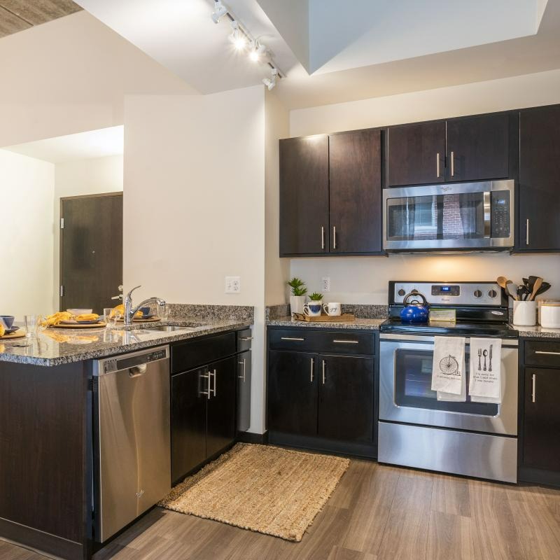 公寓配备落地窗、硬木风格地板、花岗岩台面、设备齐全的厨房(含节能不锈钢家电)