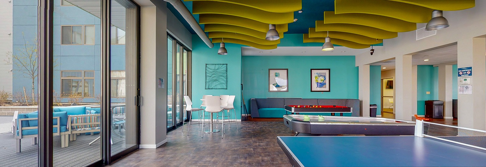 休闲与社交:大型俱乐部会所(含空气曲棍球桌、台球桌等游戏设施,可用于社交或放松);两个景观庭院(阳光充足,配备舒适座椅,适合课后休闲或朋友小聚);游戏室(提供娱乐活动空间)。