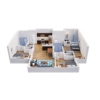 核心优势:户型多样,涵盖 1-4 卧室(均为 1 卧室配 1 卫生间),全部家具齐全、空间宽敞,采用现代装修风格。以 “社区驱动” 为核心,通过丰富的活动和共享空间促进学生互动,同时支持学术与个人发展。提供全包式服务,简化居住流程,最大化便利性,让学生专注于学习与生活。
