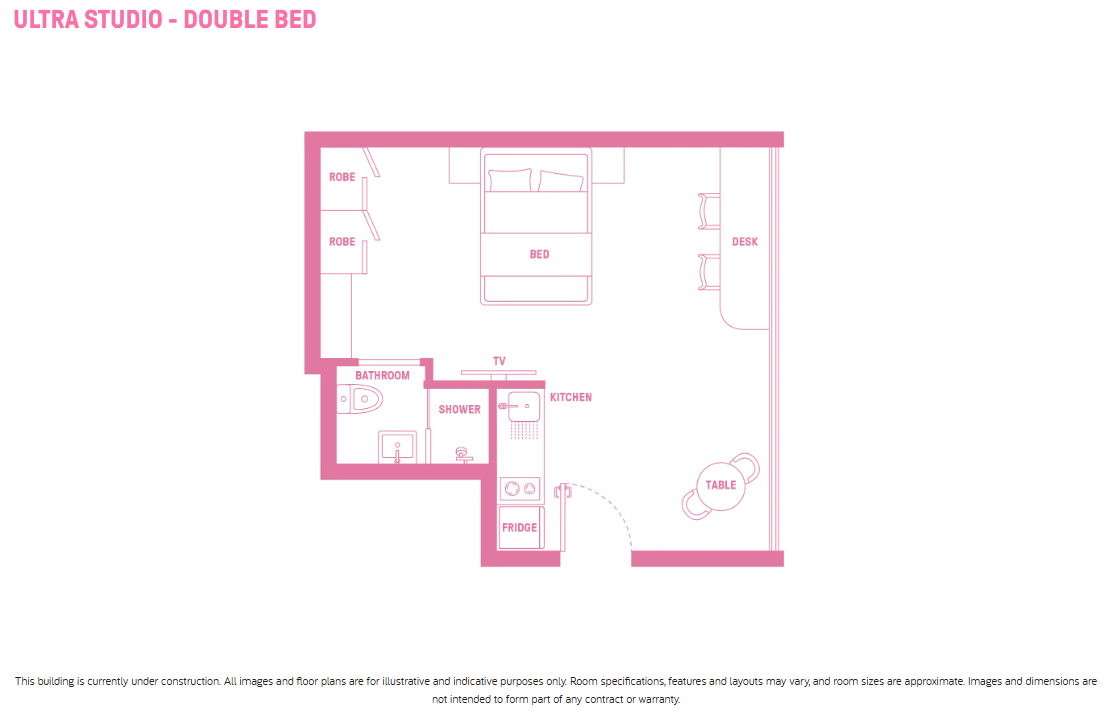 公共区:有高速 Wi-Fi 学习区、多区域厨房,专属泳池、还有小影院室可观看 Netflix 热门影片,独处或组队都方便。