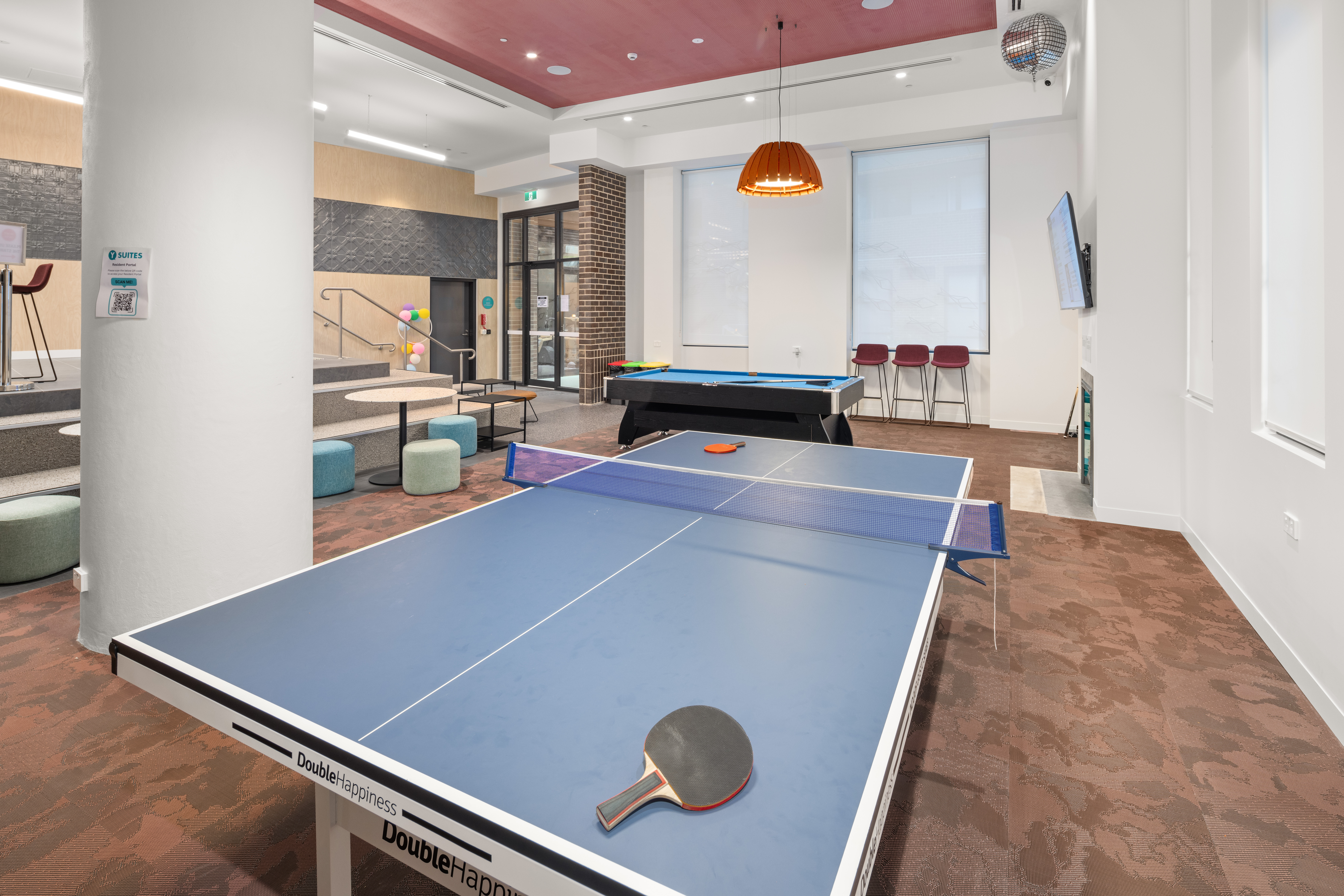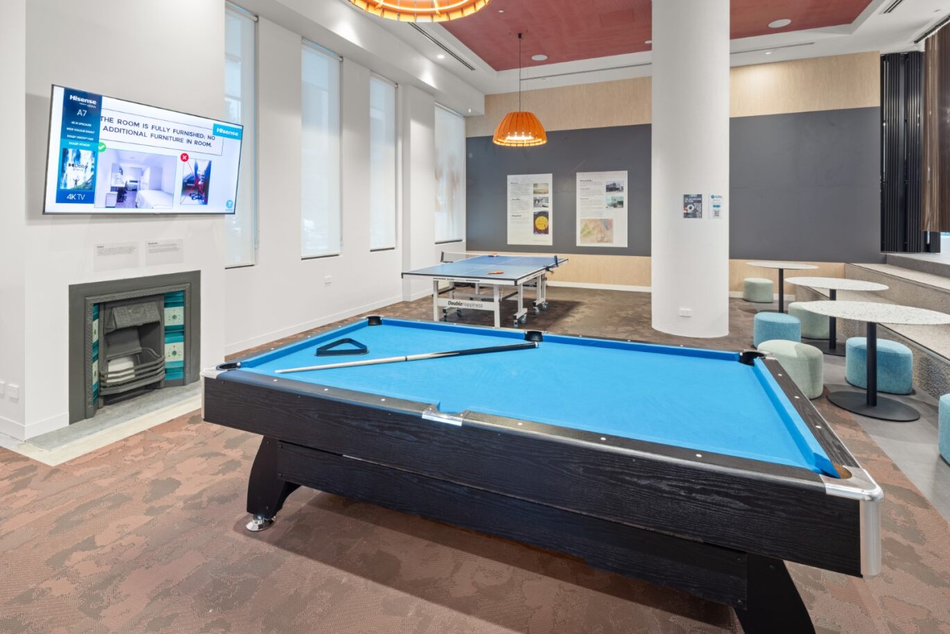 租金全包,拎包入住,房间内配备学习区、USB 接口,厨房包含冰箱、微波炉、电磁炉等设备。公共区域有休息室、游戏室、电影院、露台、烧烤区等社交空间,也有公共学习区、厨房、包裹柜、自行车存放处、洗衣房及健身房。公寓定期组织披萨游戏夜、健康工作坊、烹饪课程、本地城市游览等活动,并提供本地商家专属优惠,丰富学生生活。