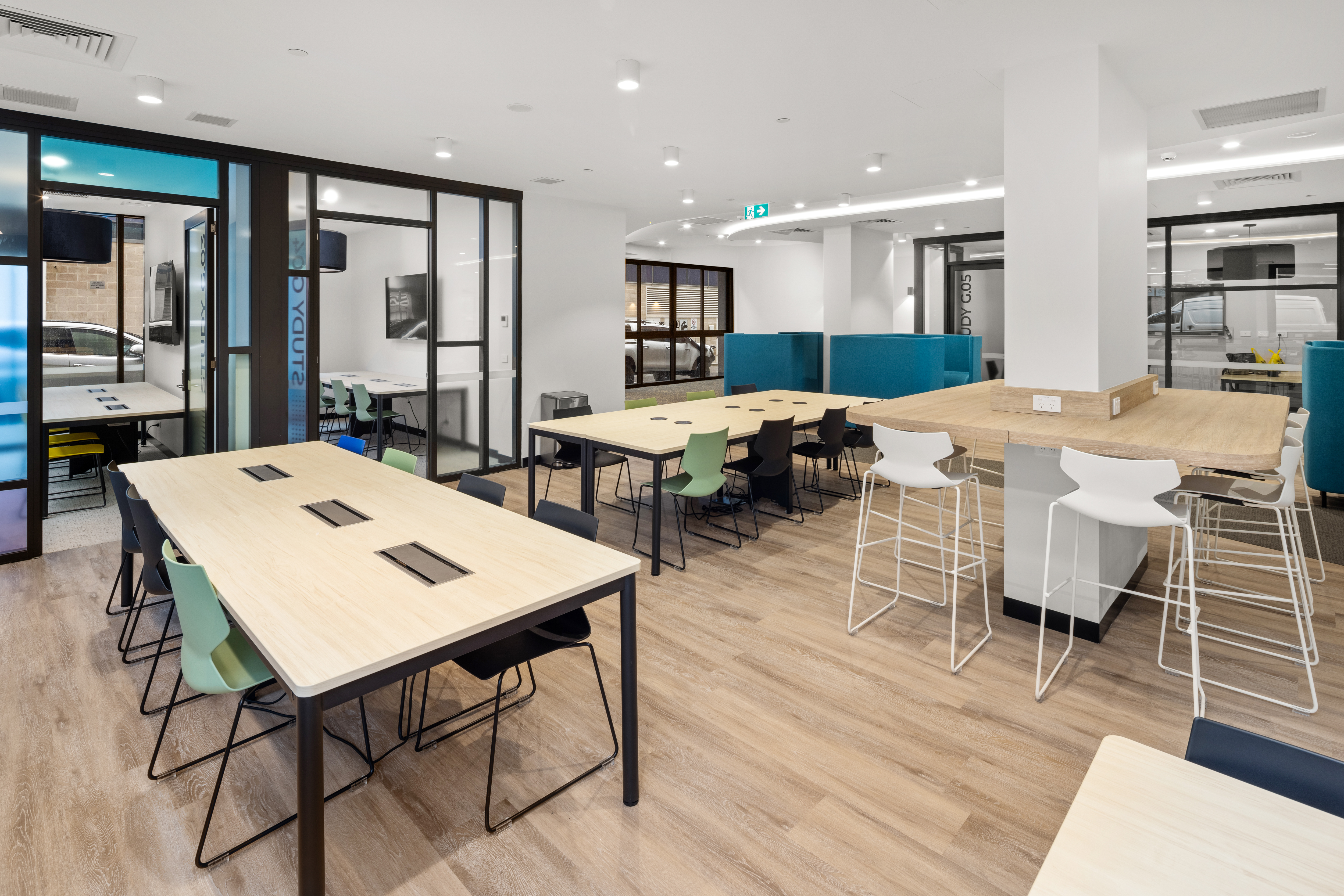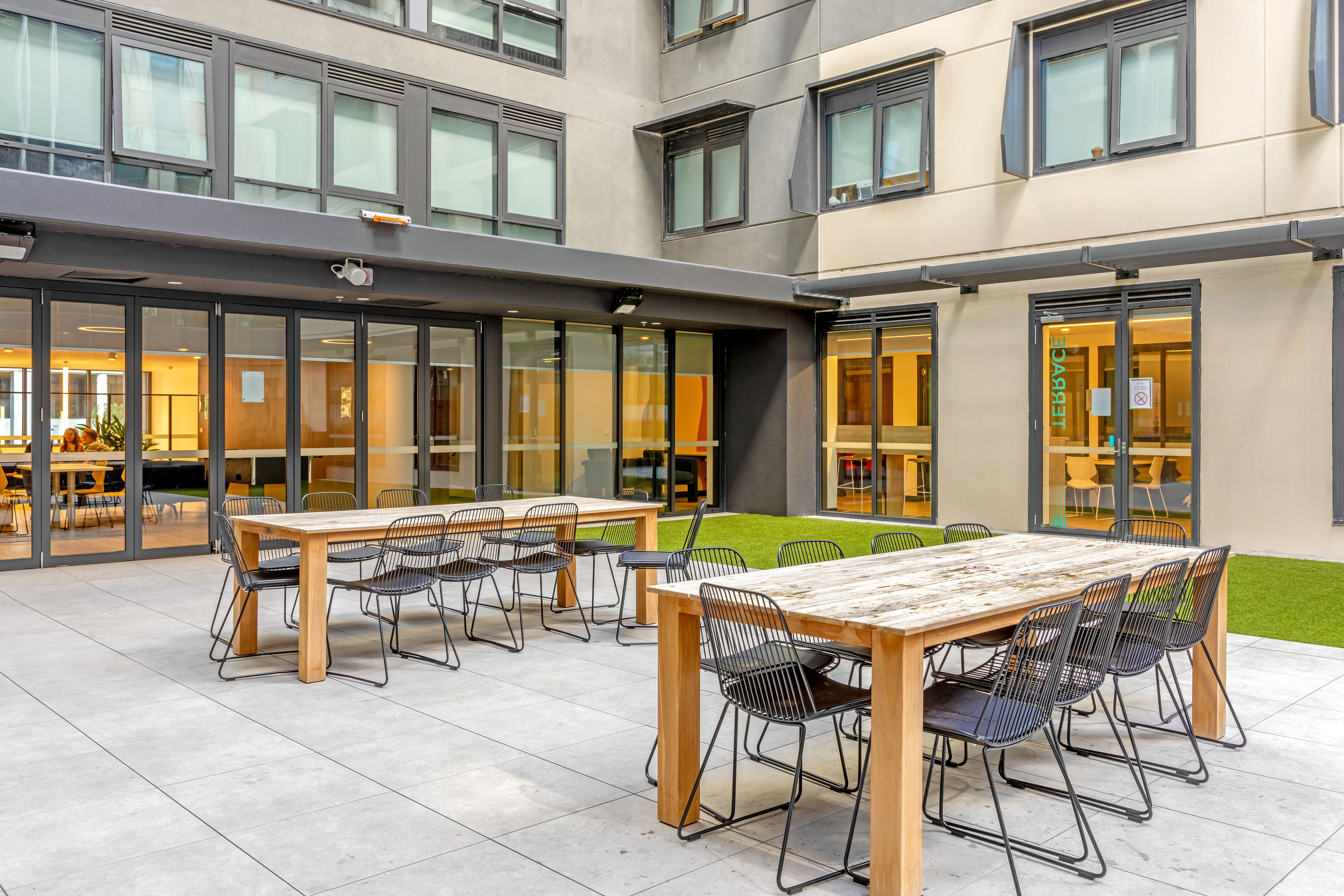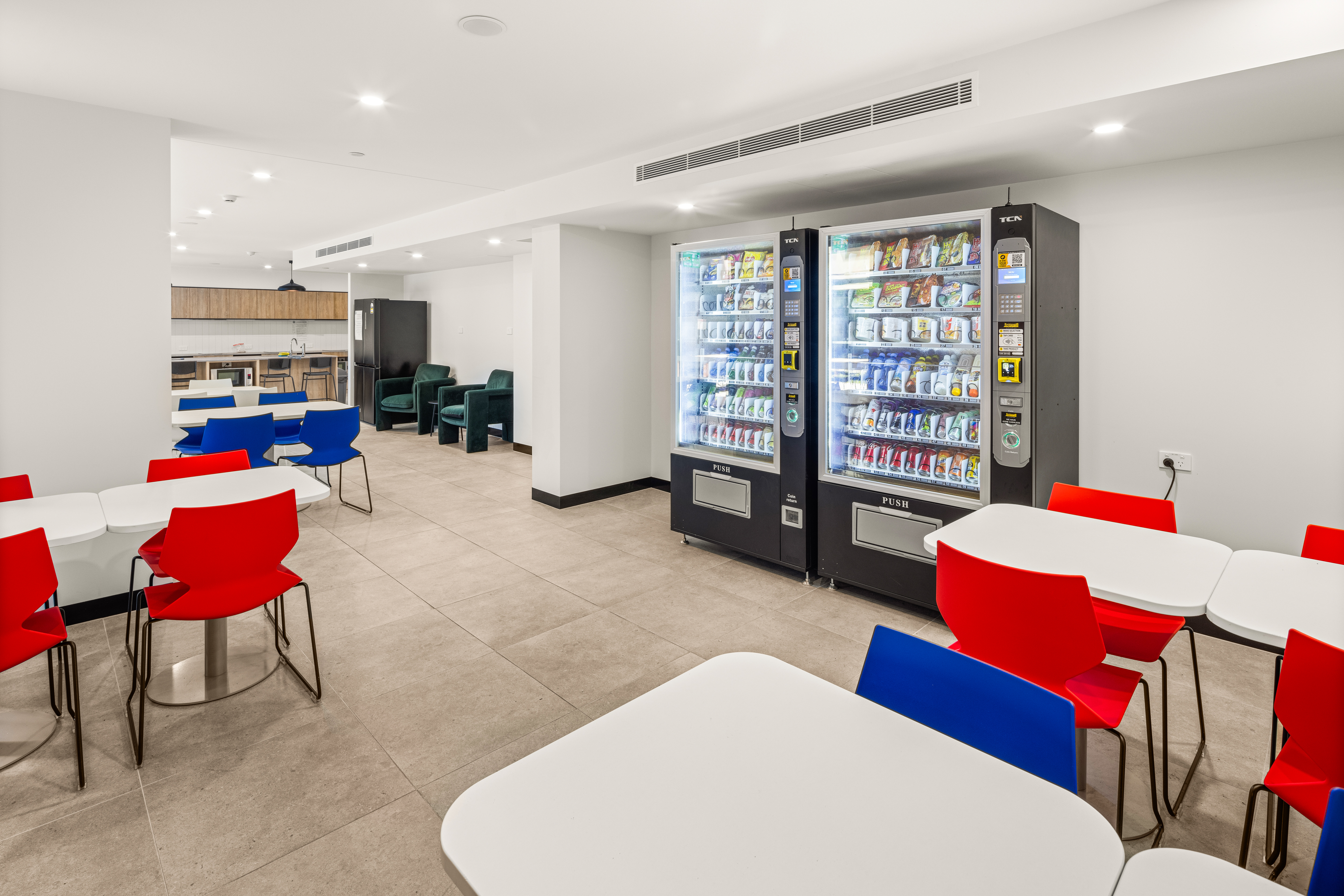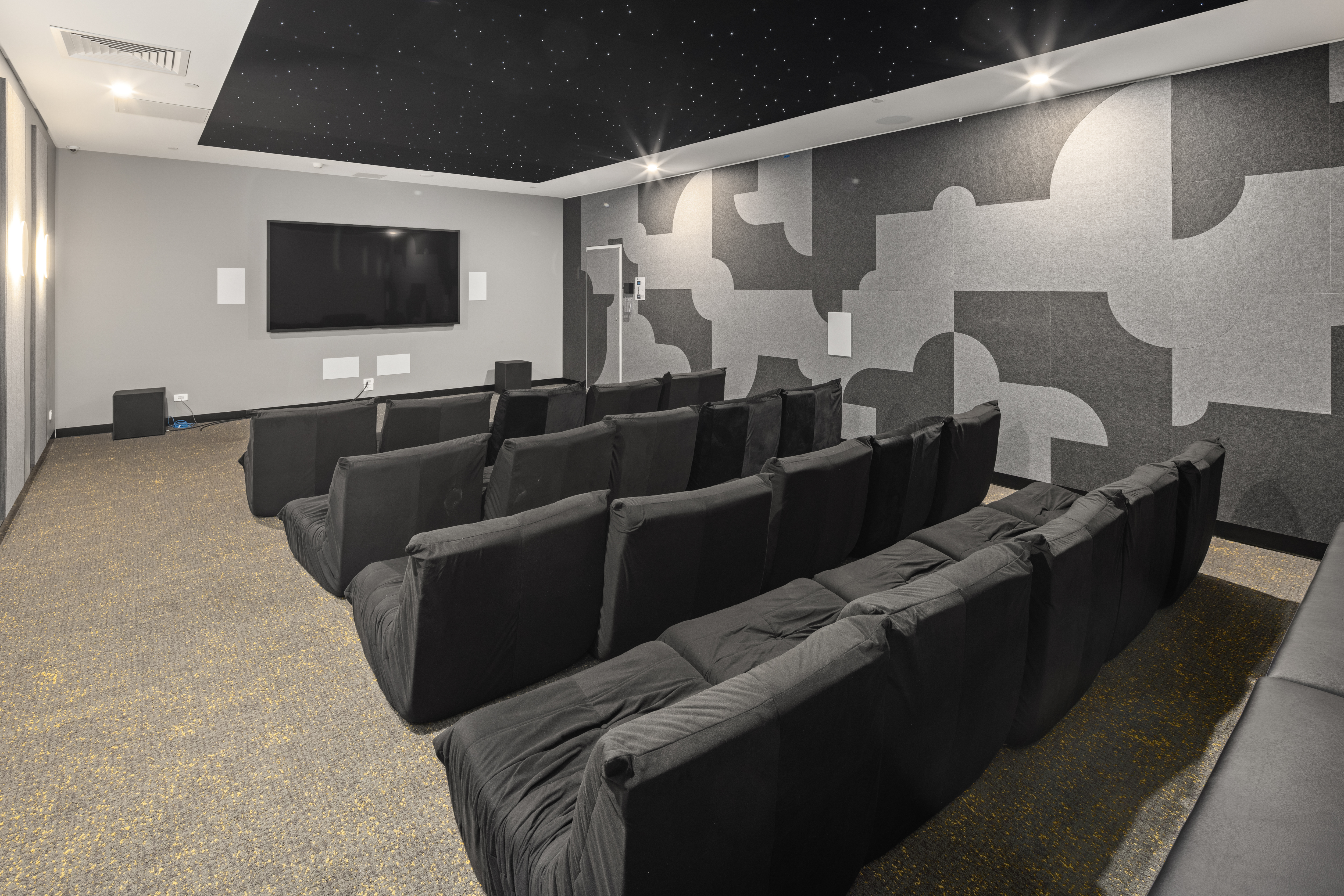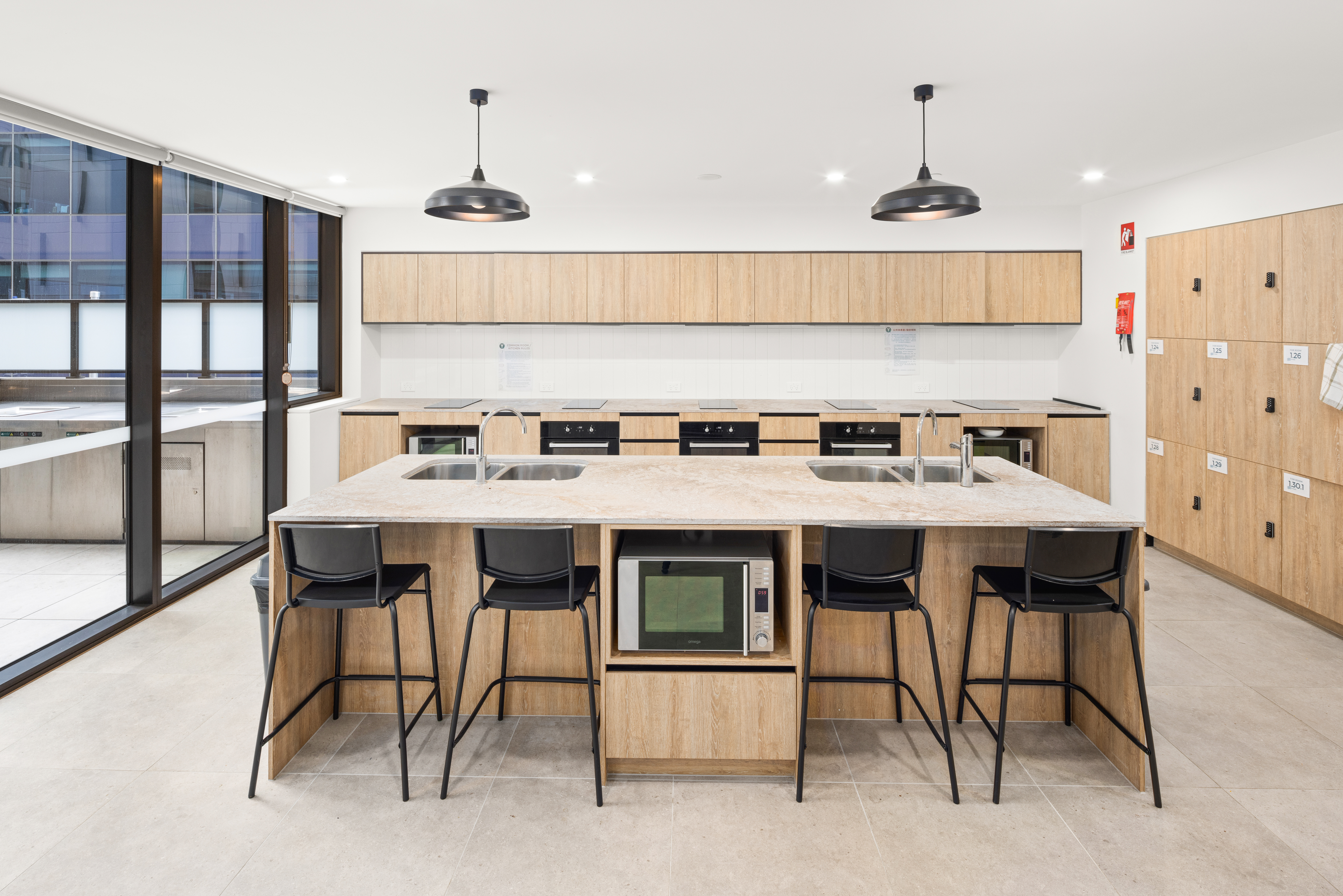 公寓公共空间丰富多样,涵盖生活、娱乐、学习等多个维度。生活类设施包括公共休息区、公共厨房与用餐区、洗衣房、数字包裹寄存柜及 BBQ 区域;娱乐类设施有健身房(、游戏室、电影院;学习类设施为专门的学习区,为学生提供安静的学习环境。此外,公共区域还配备 24 小时安保团队与 CCTV 监控,结合门禁卡系统,全方位保障居住安全。