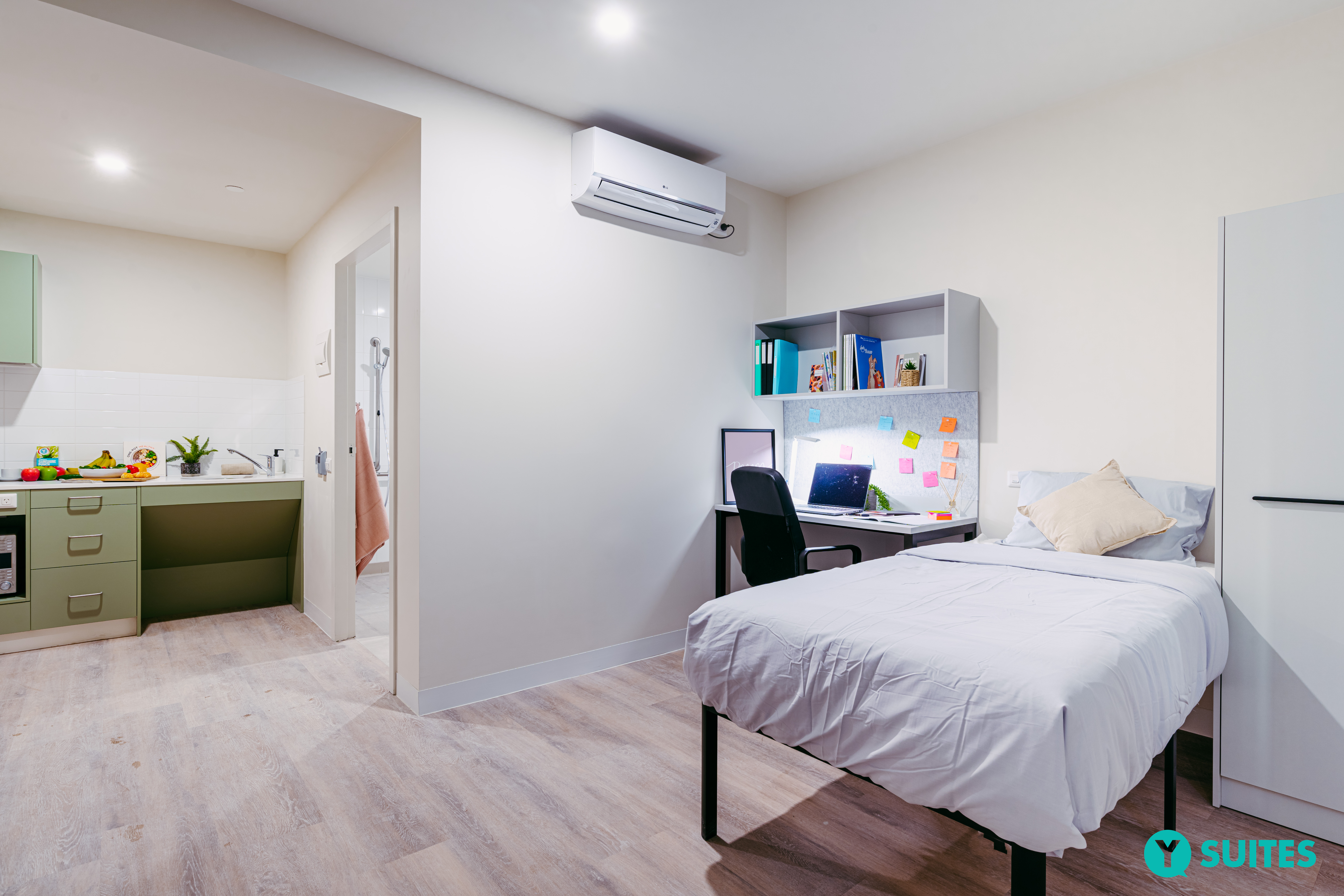 房型丰富,且所有房型均注重居住实用性与舒适性,配备舒适床铺、学习区及储物空间,且租金包含水电、网络、空调等基础费用,同时提供 24 小时安保(含 CCTV、门禁卡)、 onsite 支持等服务,入住流程便捷,可在线申请、支付押金并签署租约,单人入住还能享受基于年龄和性别匹配室友的服务。