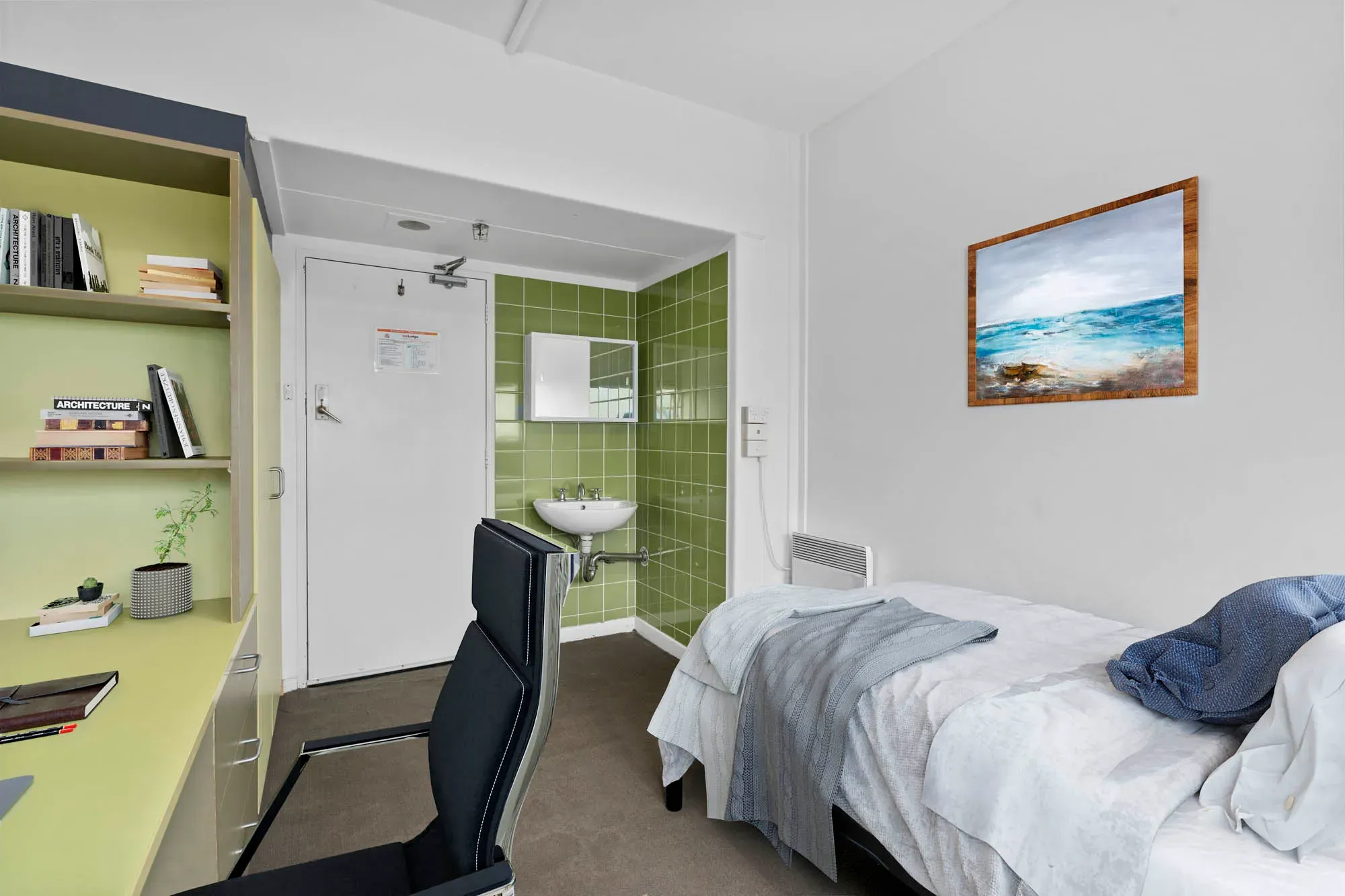 12 层现代化学生公寓,主打舒适与便捷的居住体验。公寓提供多种房型,所有房间均为全配家具,基本配备床、书桌、办公椅、衣柜、壁挂式加热器及迷你冰箱,部分房型还可根据需求定制床型。固定租约,最短租期为 6 个月。租金按周定价按月支付,需缴纳相当于一个月租金的保证金(由维多利亚州住宅租赁保证金管理局 RTBA 托管),押金包含首月租金、保证金及清洁费。成功申请后最快 24 小时内可入住,同时注重居住安全,配备电子门禁卡及公共区域监控系统,且有专业团队维护公共区域清洁与设施维修。