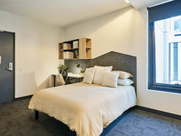 公寓提供多种房型选择,包括标准卧室(Standard Bedroom)、高级套间(Premier Ensuite)和豪华套间(Superior Ensuite),每种房型均配备床、带充足储物空间的书桌及衣柜,满足学生基础居住与学习需求。此外,公寓注重平衡学生的学习与社交生活,通过每月举办各类活动,并在 iOS 和 Android 端的 “UniLodge 住户中心” 及活动页面更新,为学生创造丰富的社交机会,避免单调的大学生活。