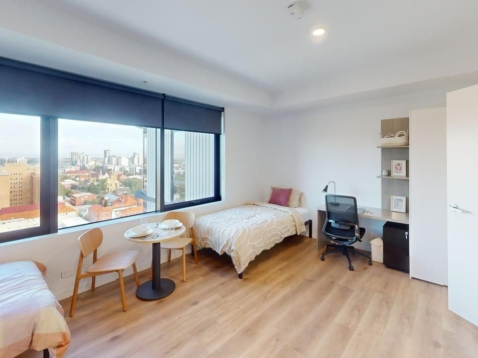 位于珀斯中央商务区(CBD)惠灵顿街与皮尔街交汇处的学生公寓,30 层高层建筑,专为学生打造 “家外之家”,提供多样化住宿选择以适配不同居住偏好,同时配备丰富 communal 设施与贴心服务,兼顾学习、生活与社交需求,助力学生融入珀斯充满活力的学生生活。公寓住宿选择极具多样性,涵盖多种户型,能满足不同学生的居住需求,更推出 “Your Shop 免费配送” 服务,学生购买住宿必需品可享受免费配送。通过 “社区精神计划”为学生创造社交机会,每月举办各类活动,住户可在UniLodge Resident Hub 及活动页面查询活动信息,助力学生平衡学习与社交生活。