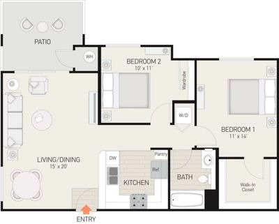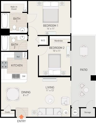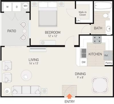 网络与生活基础设施:提供谷歌光纤(Google Fiber)与 Cox Gigablast℠超高速网络服务,满足住户对高速网络的需求;室内统一配备洗衣机 / 烘干机(In-Home Washer/Dryer)、冰箱(Ref.)、洗碗机(DW)等家电,部分户型还设有储藏室(Storage)与食品储藏柜(Pantry),生活便捷度拉满。