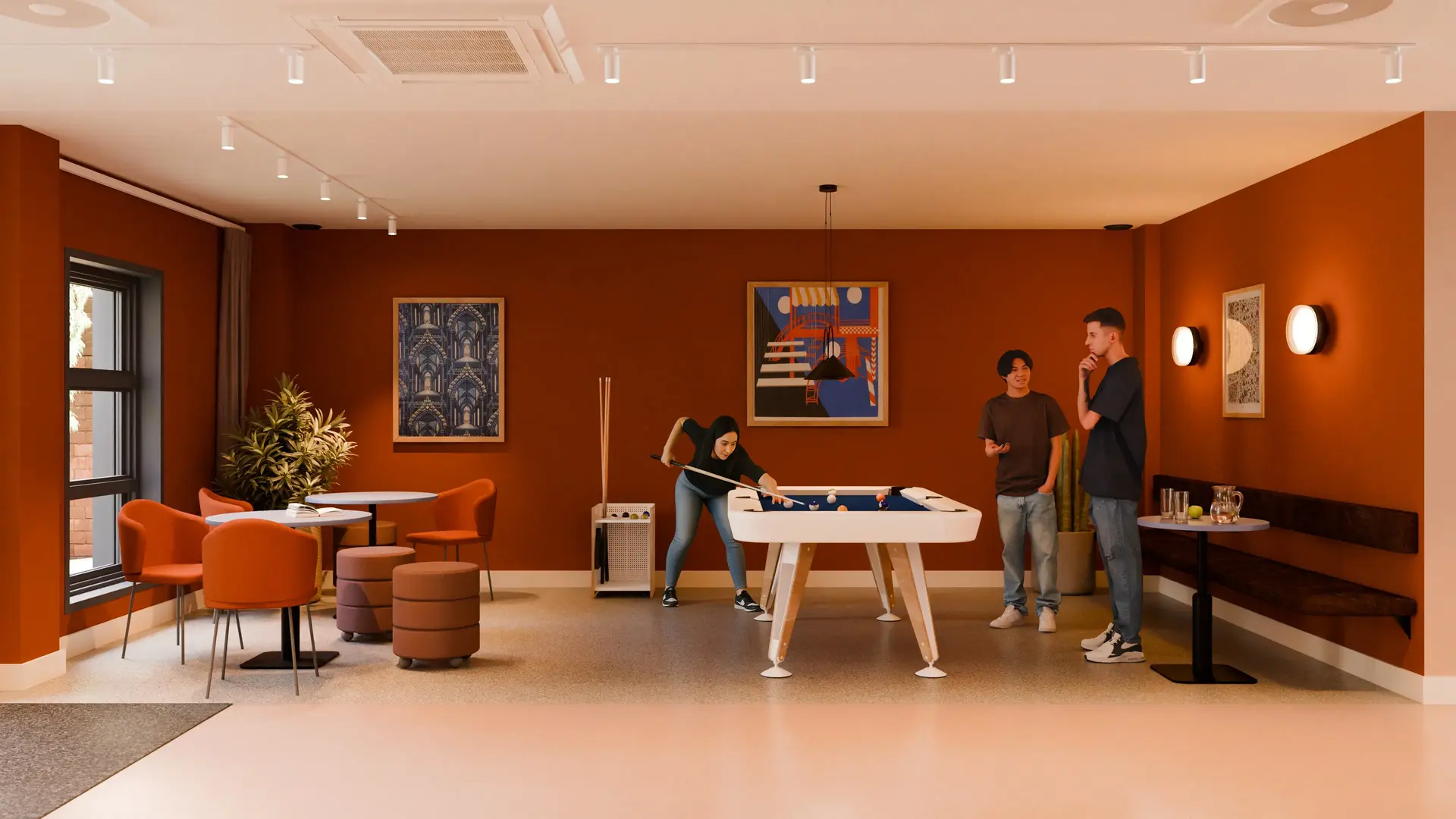 房间内部:提供Studio和大型一居室两种选择,空间规划合理,能满足学生日常居住与学习需求;房间窗户视野开阔,可直观约克城市风光,部分房间能看到约克大教堂,采光充足,居住舒适度高,冬季有暖气保障温暖,日常居住更惬意。公寓公共设施:配备健身房,方便学生课后锻炼、保持健康;设有专属咖啡吧,学习间隙或和朋友小聚都很合适;还有电影院,周末可放松观影;整体社交氛围浓厚,能轻松认识新朋友,公寓也会不定期组织小型活动,丰富课余生活,同时有贴心管理服务,居住问题能及时解决。