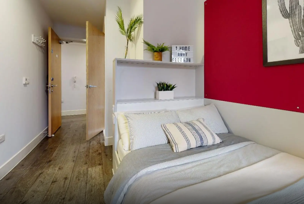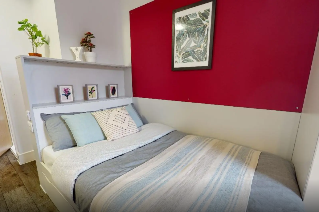 公寓提供Ensuite和Studio 房型。ensuite 房型独立卫浴、共用厨房,该公寓多为4-6人间,是喜欢社交的学生的最佳选择;Studio房型独立卫浴、独立厨房,为学生提供更私密和自在的个人空间。 房间配有双人床、书桌椅、衣柜、穿衣镜等,有充足的储物空间。厨房配有灶台、冰箱、烤箱等。